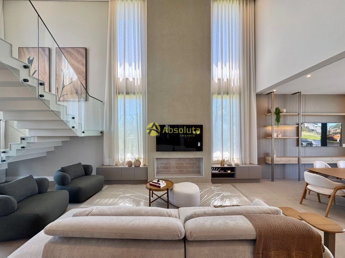 Sobrado novo, moderno, finamente mobiliado e decorado com ambientes aconchegantes, totalizando 342 M² de área útil, além de ser uma construção de excelente padrão, também está muito bem localizado em frente á Avenida principal e clube de lazer do condominio.