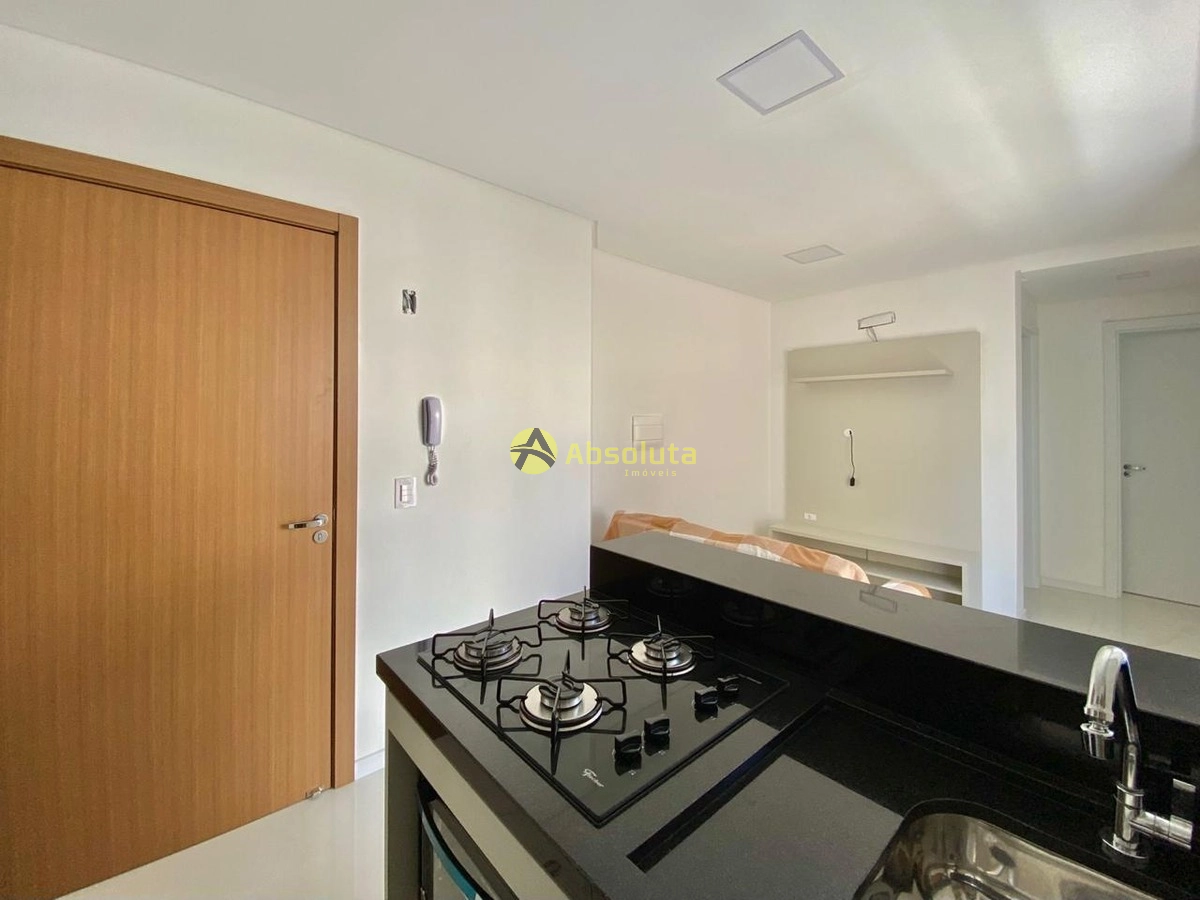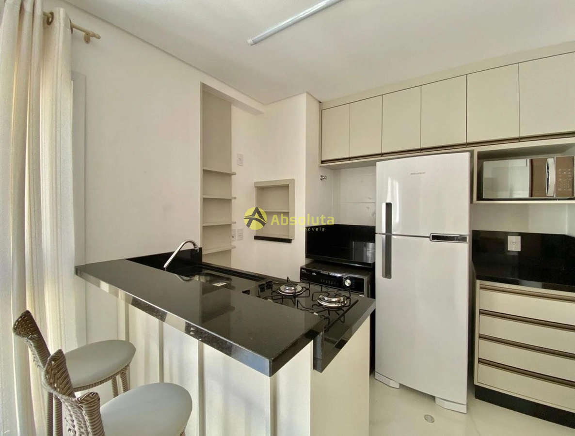 Apto 01 dormitório, mobiliado, cozinha e área de serviço integrado, banho social, living 2 ambientes, piso porcelanato, água quente, gás central, espera para ar split, tubulação para água quente, esquadrias em PVC, churrasqueira na sacada, posição solar Leste/Norte, box de garagem.