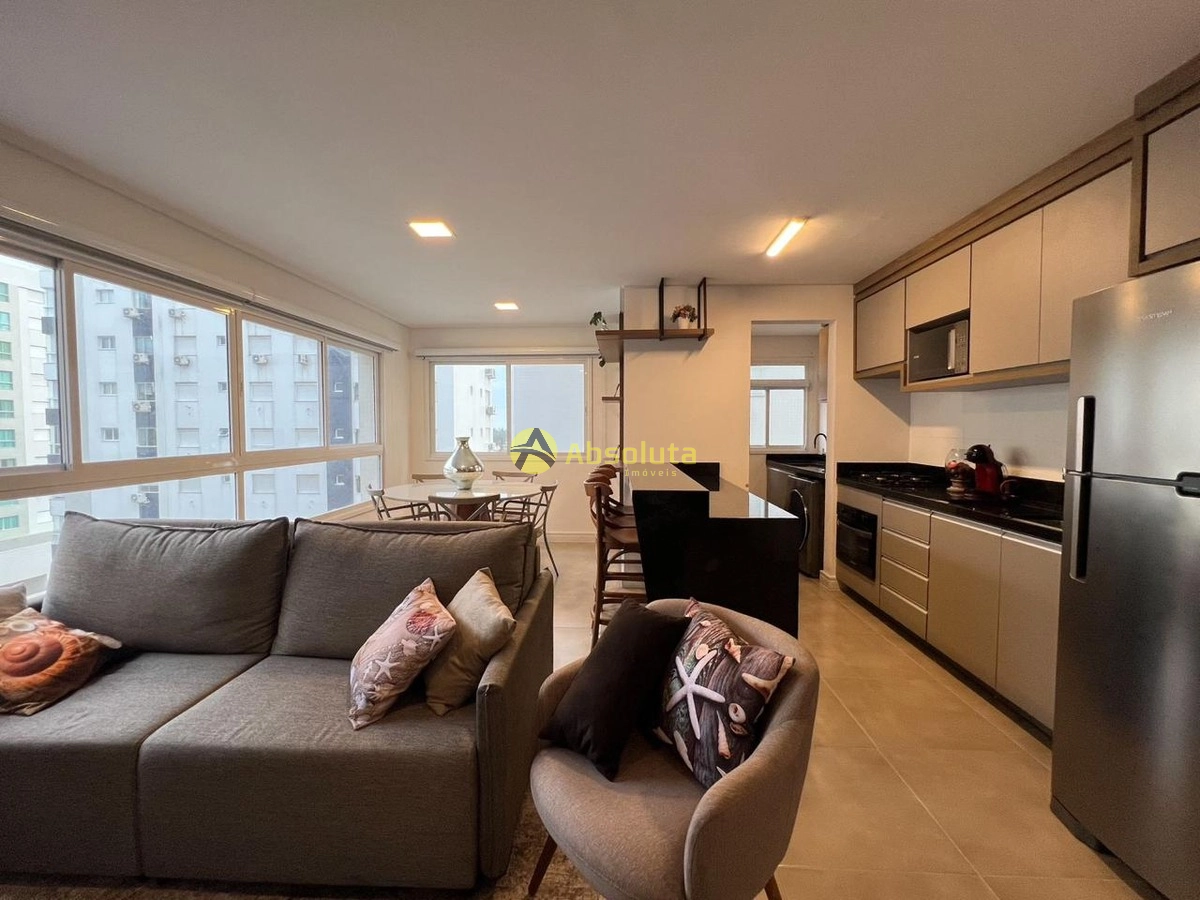 Belíssimo apartamento composto por dois dormitórios sendo uma suíte banheiro social totalmente mobiliado com sacada integrada e churrasqueira cozinha estilo americana integrada aos ambientes área de serviço iluminação moderna piso em porcelanato espera para ar split ótima ventilação natural e um box de fácil acesso edifício novo com zeladoria permanente o ano inteiro elevador e localizado a apenas duas quadras do mar.