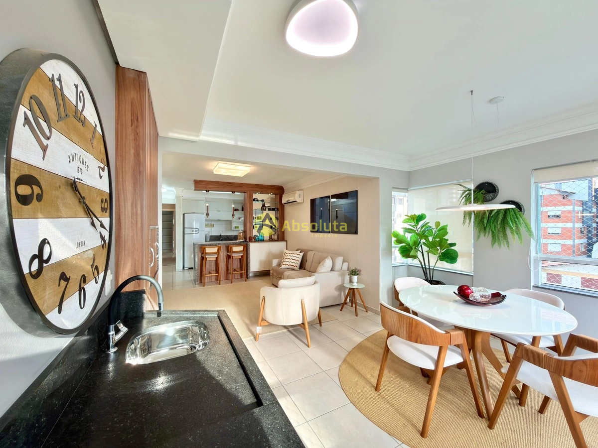 Apartamento totalmente mobiliado e equipado, 3 ar instalado, composto de 2 dormitórios, um sendo uma suíte, banheiro social, living em três ambientes, sacada integrada, churrasqueira, cozinha estilo americana, área de serviço separada, e um box de fácil acesso.