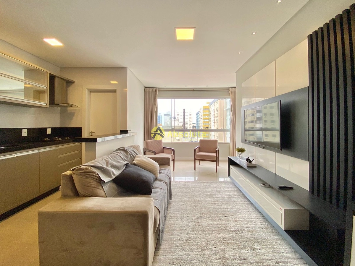Apartamento diferenciado, amplo 2 dormitórios, sendo uma suíte, todo mobiliado, de frente para a rua, sol da manhã, são 102m² de área, ambientes climatizados, churrasqueira, bancada em granito, área de serviço separada, piso porcelanato, box para carro.