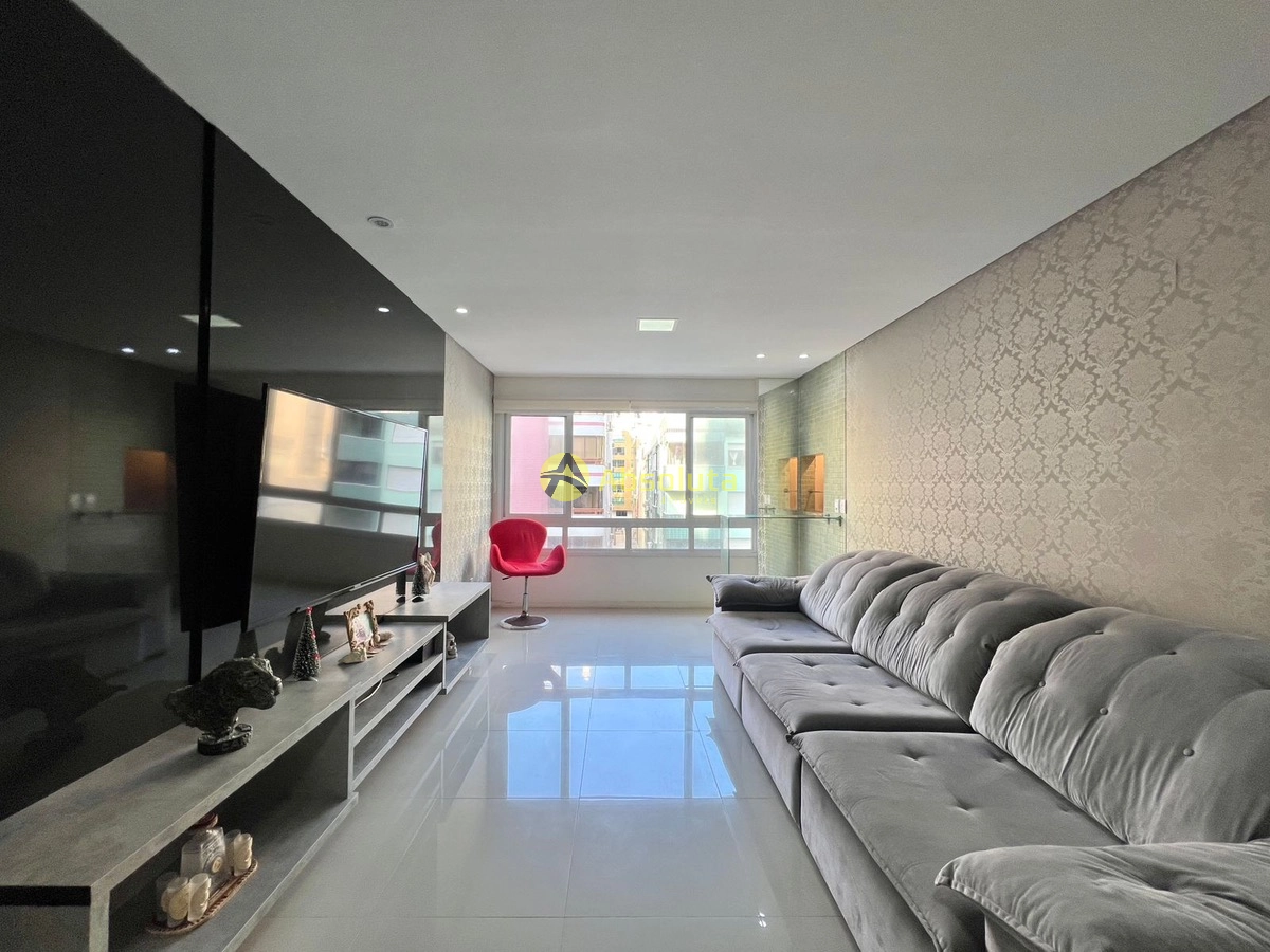 Gigantesco apartamento mobiliado, living integrando á sala de jantar, estar á sacada com churrasqueira, cozinha em conceito aberto com acesso á área de serviço separada, um banheiro social, a parte intima é composta por dois dormitórios, sendo uma suíte, tem uma excelente orientação solar e um excelente box de estacionamento.