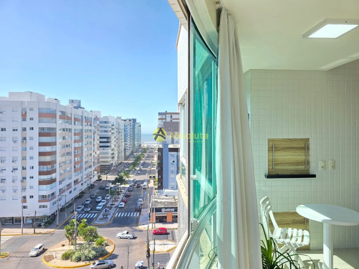 Apartamento composto por 02 dormitórios, sendo 01 suíte, completamente mobiliado e equipado, todos ar split instalados, living amplo e bem dividido nos seus dois ambientes, sacada de frente com churrasqueira, com uma linda vista para serra, lagoa, Av e para o mar, cozinha estilo americana, área de serviço separada e box de garagem no térreo.