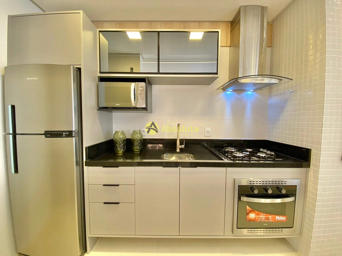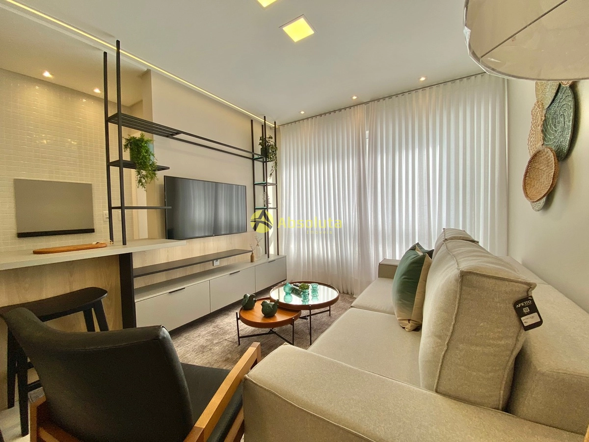 Apartamento finamente mobiliado e decorado, living amplo e com excelente integração de ambientes, sacada com churrasqueira e bancada, cozinha americana, área de serviço separada, um banheiro social, a parte íntima é composta por dois dormitórios sendo uma suíte, tem uma excelente orientação solar, sistema de climatização em todos os ambientes e um box de estacionamento, edifício de alto padrão construtivo composto de um salão de festas e terraço com vista, todos os apartamentos com espera para água quente, gás central, hidrômetro individual e ar split, portão e porteiro eletrônico, zeladora permanente, dois elevadores digitais e hall de entrada decorado.