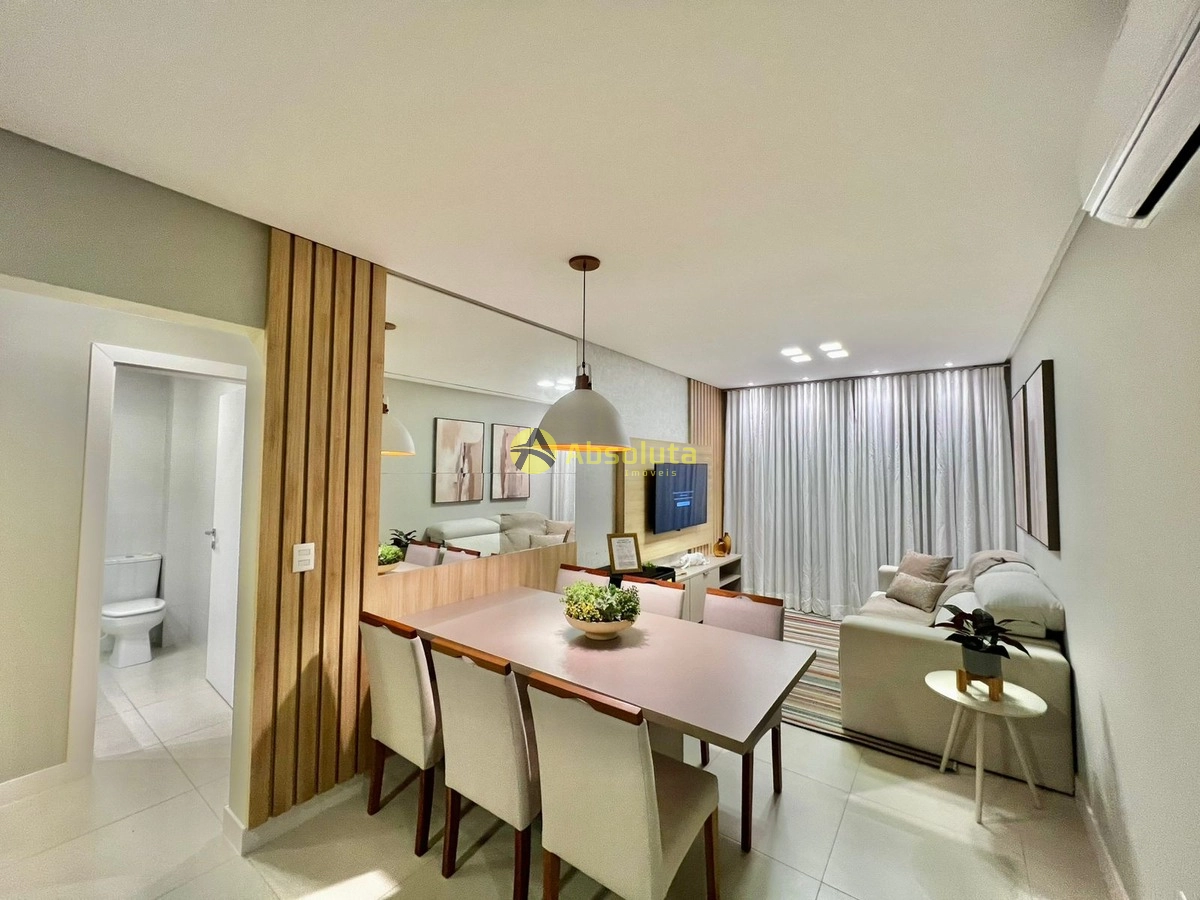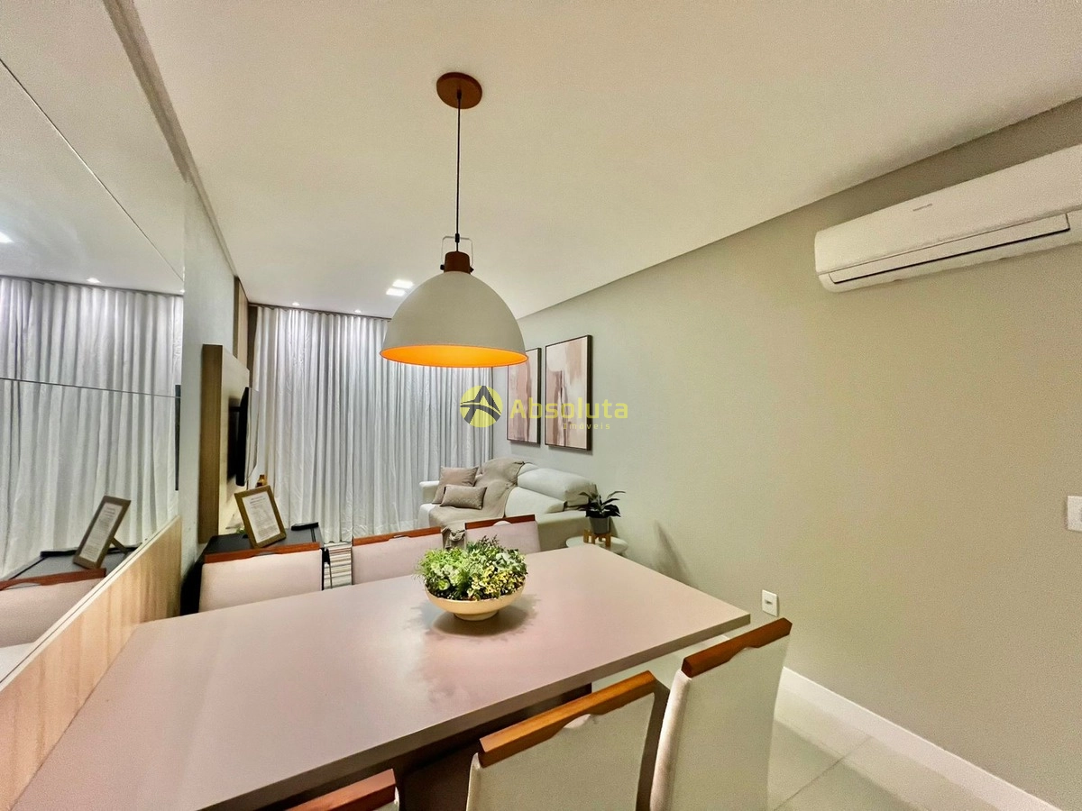Apartamento finamente mobiliado e decorado, cozinha equipada, churrasqueira e bancada, área de serviço separada, um banheiro social, a parte íntima é composta por dois dormitórios sendo uma suíte, tem uma excelente orientação solar, ambientes climatizados e um box de estacionamento. Edifício de alto padrão construtivo composto de um salão de festas e terraço com vista, todos os apartamentos com espera para água quente, gás central, hidrômetro individual e ar split, portão e porteiro eletrônico, zeladora permanente, dois elevadores digitais e hall de entrada decorado.