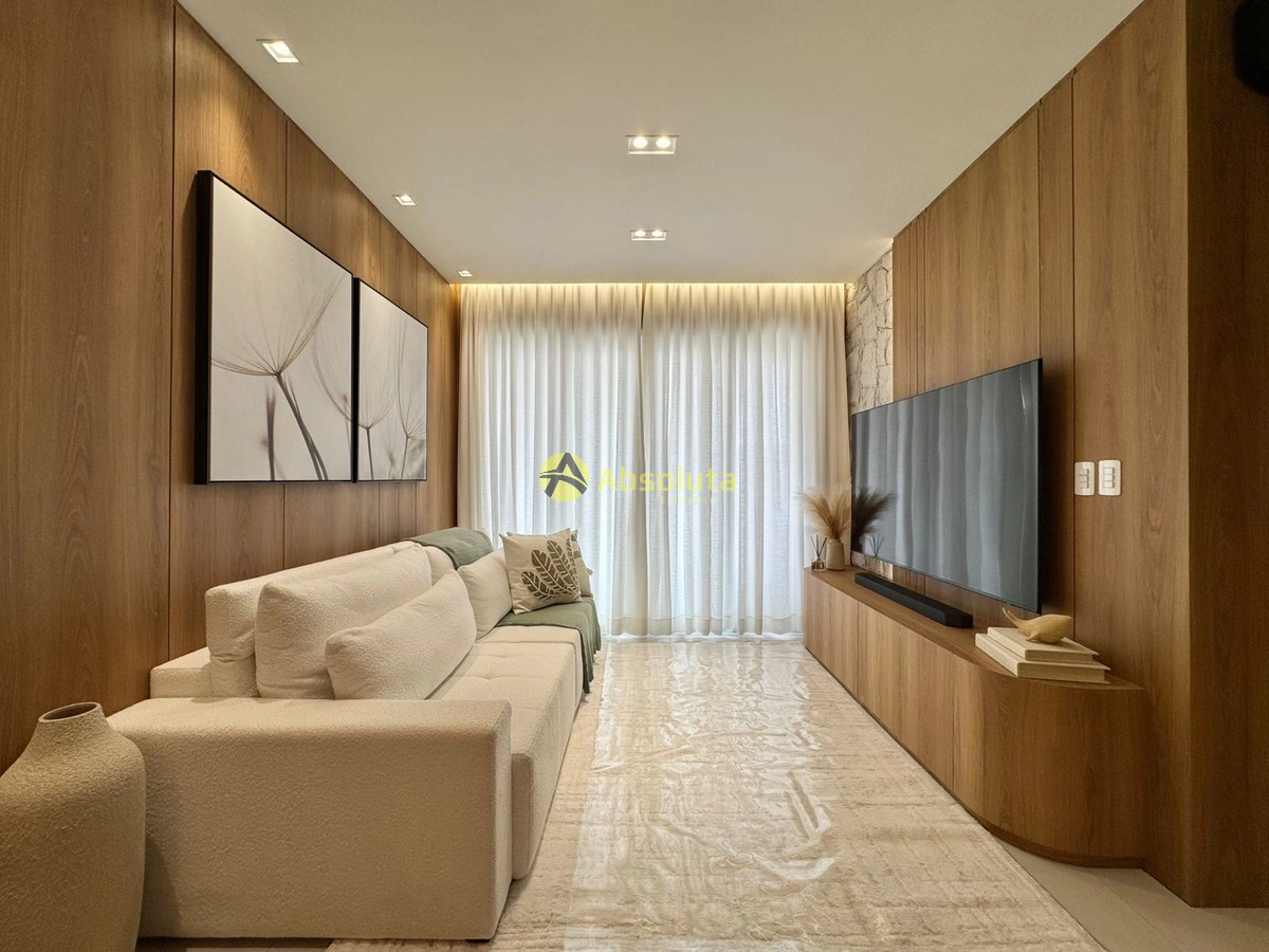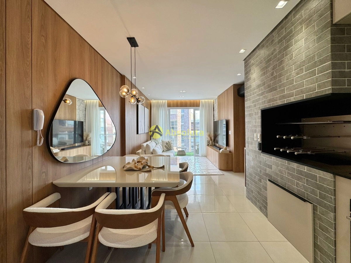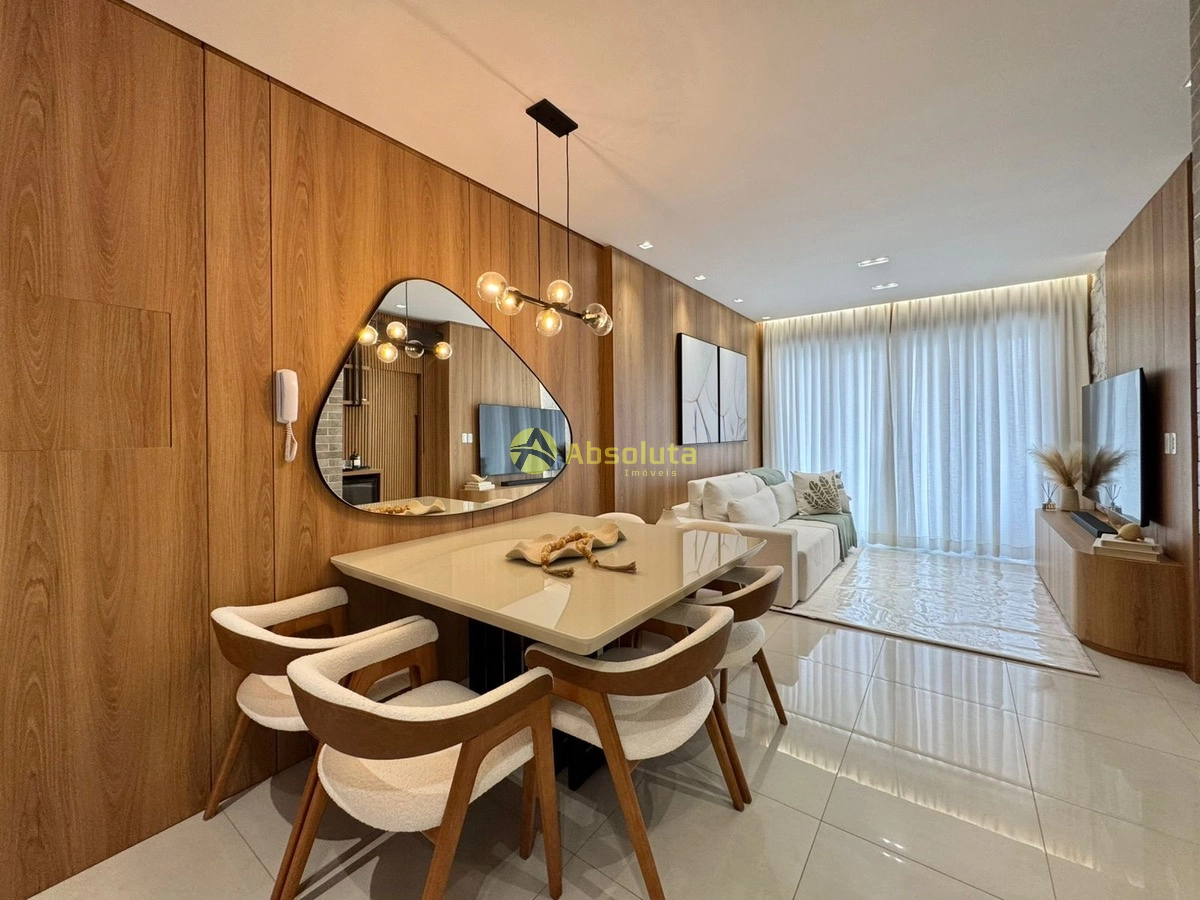 Apartamento finamente mobiliado e decorado, living integrando á sala de jantar, estar e á cozinha com churrasqueira, á sacada de frente com vista liberada, área de serviço separada, um banheiro social, a parte intima é composta por dois dormitórios, sendo uma suíte, excelente orientação solar, sistema de climatização em todos os ambientes e um box de estacionamento.