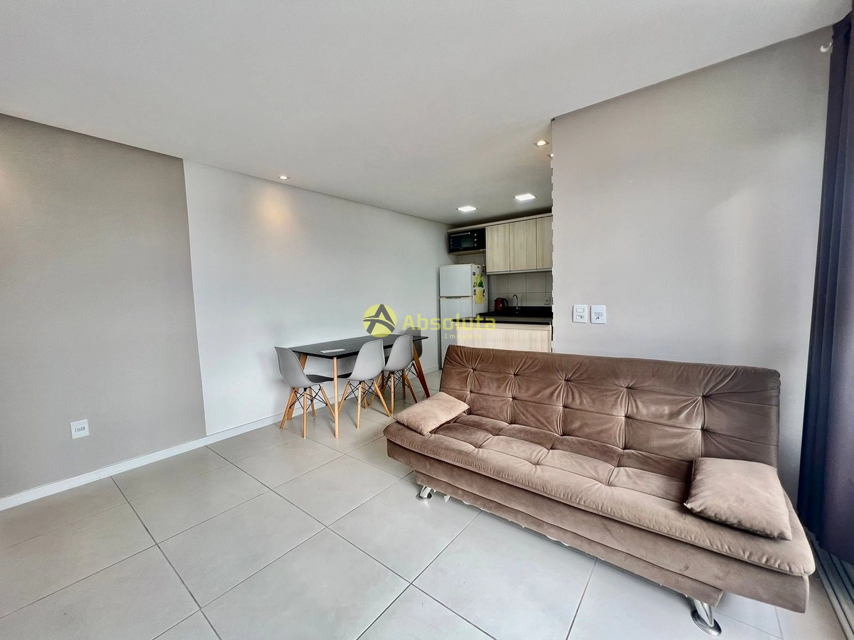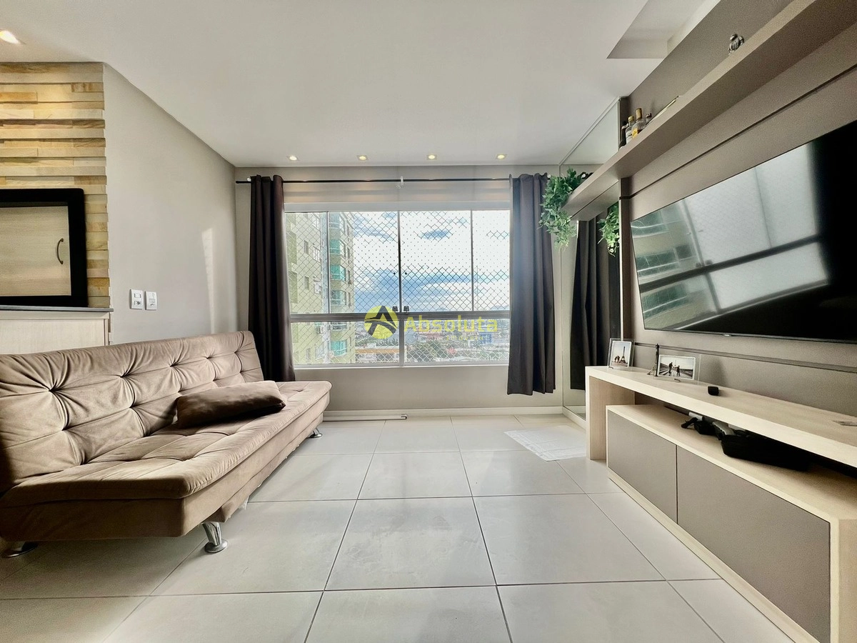 Edifício de esquina de alto padrão construtivo, 100% revestido, água quente e gás central, esquadrias em alumínio, hall decorado, 2 elevadores, salão de festas. Apartamento amplo com 2 dormitórios, sendo uma suíte, mobiliado, banho social, cozinha americana, sala de estar e jantar, sacada de frente, churrasqueira, muito iluminado e ventilado, todas as peças em porcelanato, rebaixo em gesso, split instalados e vaga de garagem.