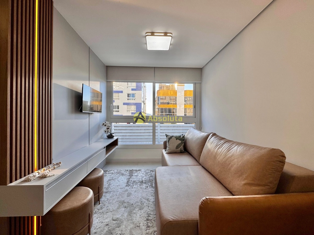 Apartamento de 02 suítes, mobiliado/decorado, cozinha equipada, lavabo, área de serviço, água quente, gás central, split em todos os ambientes, churrasqueira, living 2 ambientes, sacada de Frente Oeste, vista liberada, box de garagem.