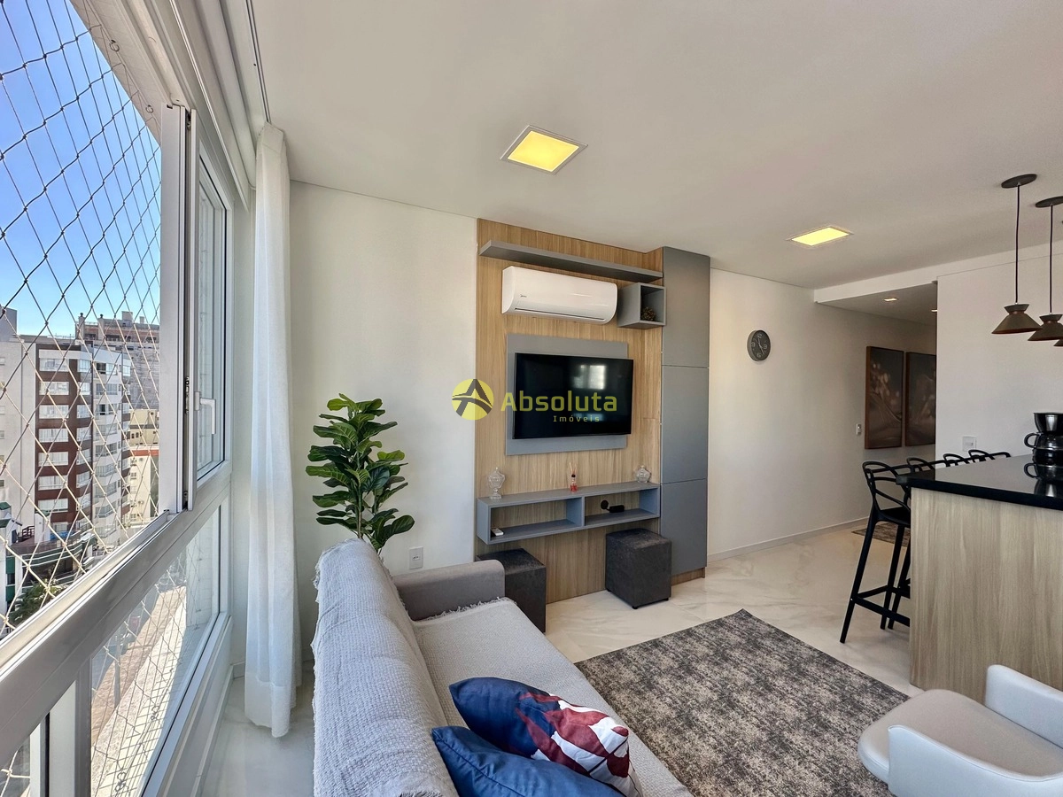 Apartamento 2 dormitórios, sendo 1 suíte , banheiro social, último andar com vista definida, living integrado estar e jantar, cozinha equipada, churrasqueira, finamente mobiliado e decorado, novo, pronto para uso, box de estacionamento. Edifício com rooftop, piscina, academia, salão de festas, zelador permanente, elevador, gás central.