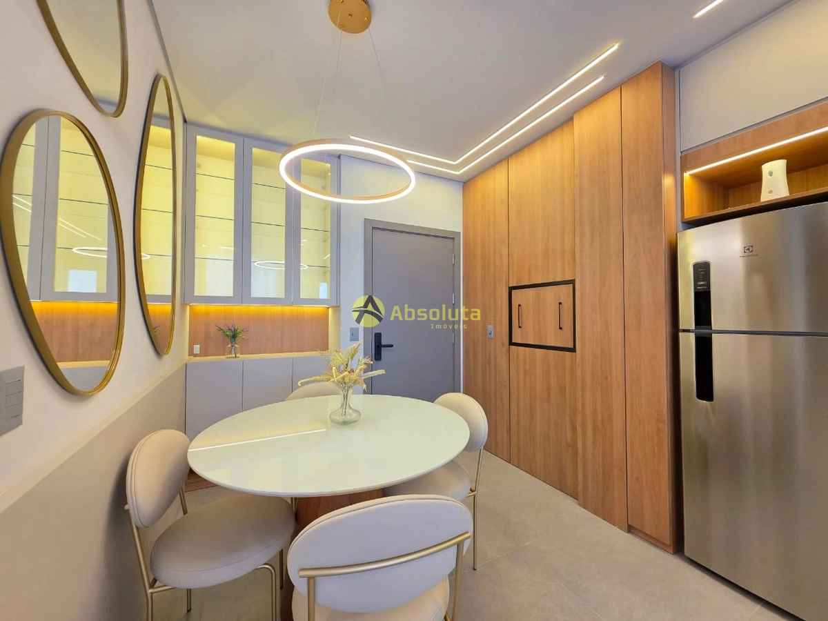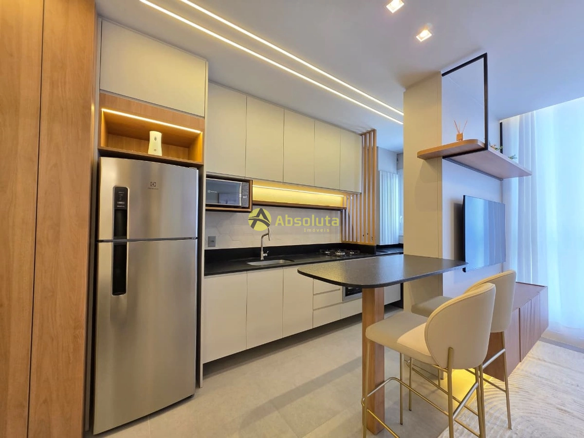 Apartamento novo, finamente mobiliado, decorado e equipado, ótima posição solar, composto de 2 dormitórios um sendo suíte, banho soial, living amplo, composto de cozinha estilo americana, área de serviço, sala de estar e jantar integradas, sacada com abertura chão teto, que proporciona mais ventilação e iluminação natural, e mais uma vaga de estacionamento.