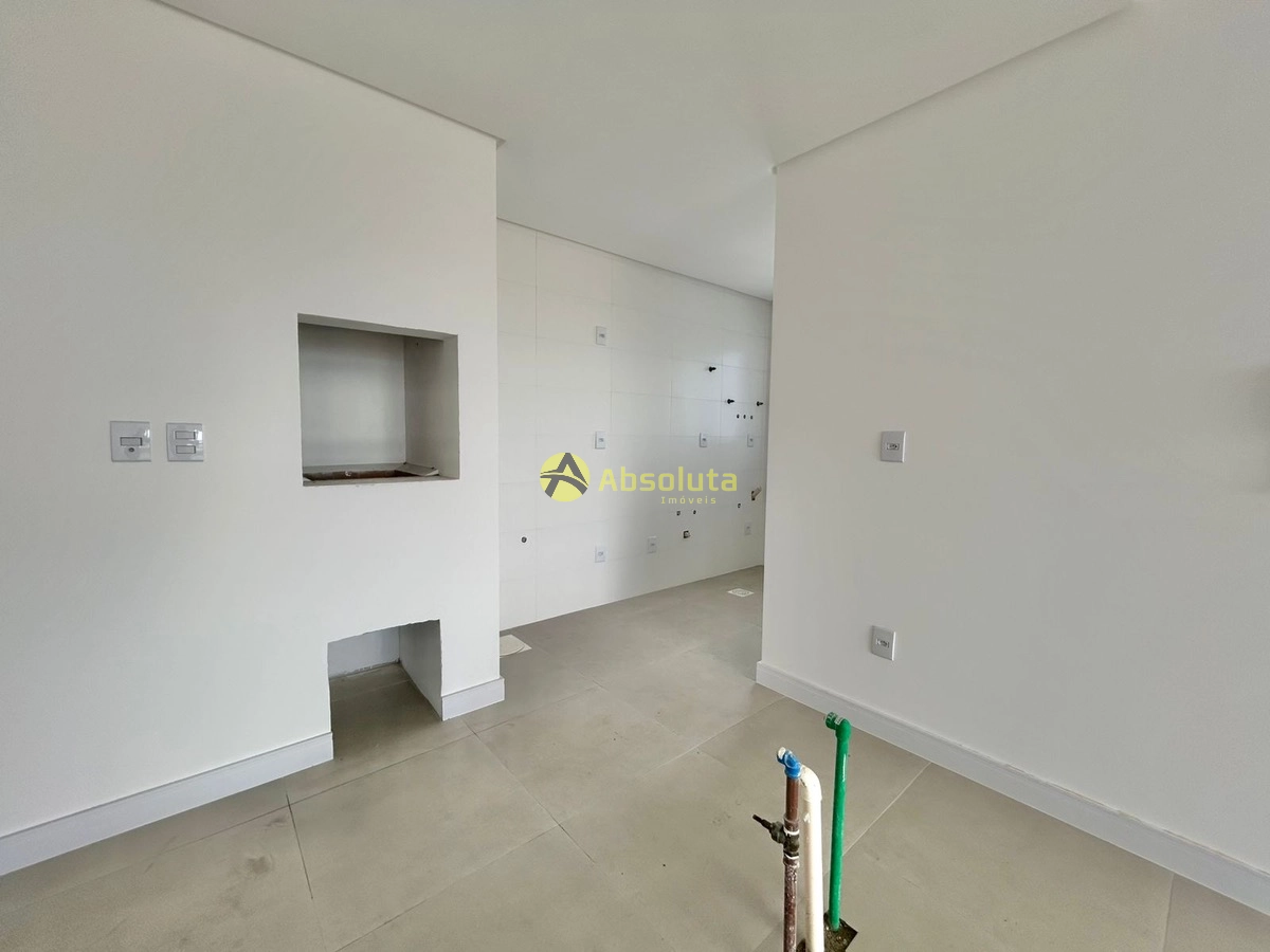 Amplo, novo recém entregue, apartamento de dois dormitórios sendo um suite mais banheiro social, living em dois ambientes composto por sala de estar e jantar, cozinha em conceito aberto com area de serviço, espera para split, agua quente e gás central, aberturas em pvc, conta com um box de estacionamento e tudo isso em andar alto com linda vista para serra.