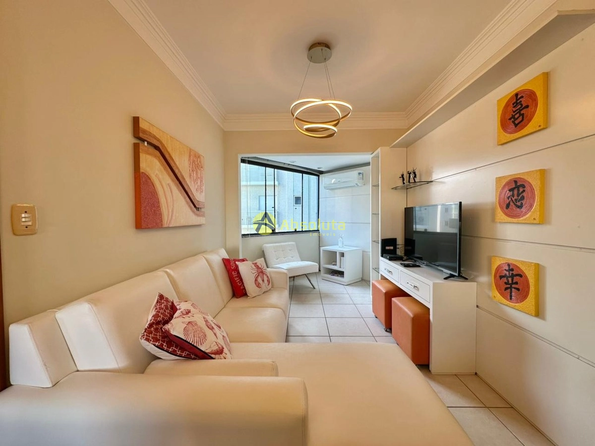 Apartamento de dois dormitórios com todas as peças bem iluminadas e com ventilação natural, living em 2 ambientes, banho social, área de serviço, sacada integrada com churrasqueira e vista para o mar, posição solar (Leste), excelente box de estacionamento com deposito.