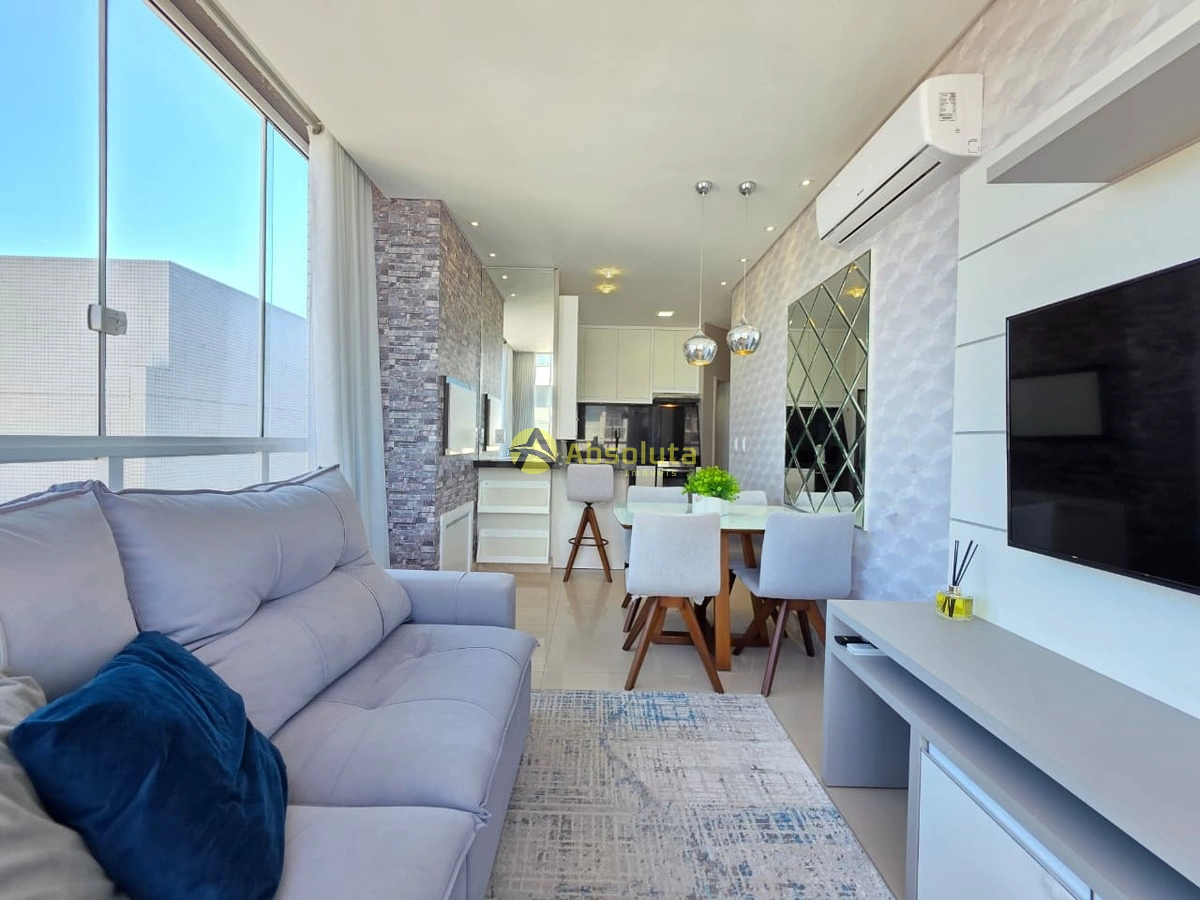 Apartamento composto de 2 dormitórios, sendo uma suíte, banho social, cozinha estilo americana com bancada, área de serviço, junker já instalado, 3 ar split já instalados, sala de estar e jantar integradas, churrasqueira, mais um box de estacionamento.