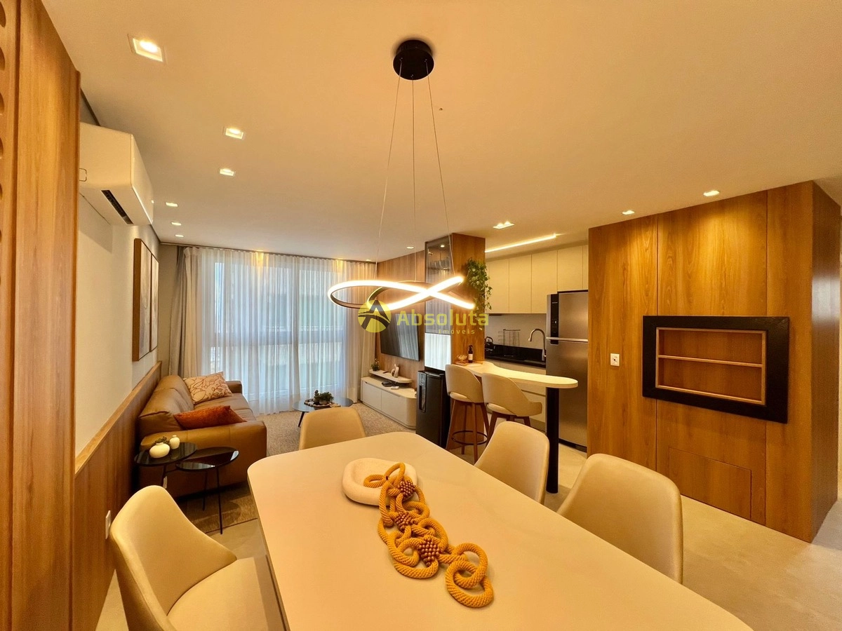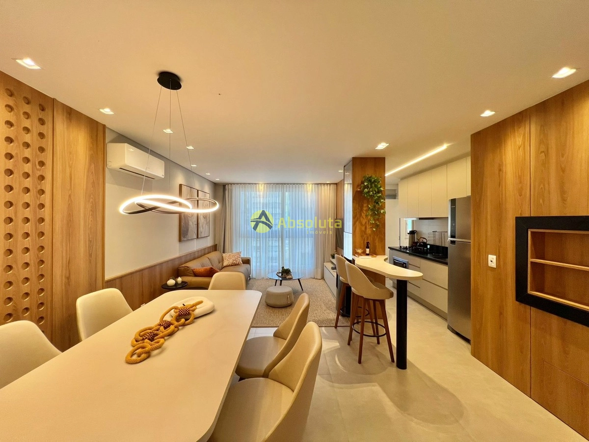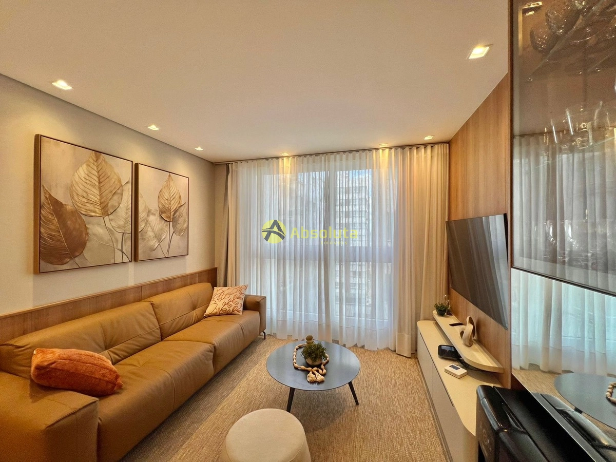 Apartamento 02 suítes, lavabo, mobiliado e decorado, todo equipado, cozinha estilo americana, churrasqueira, área de serviço separada, box de garagem.