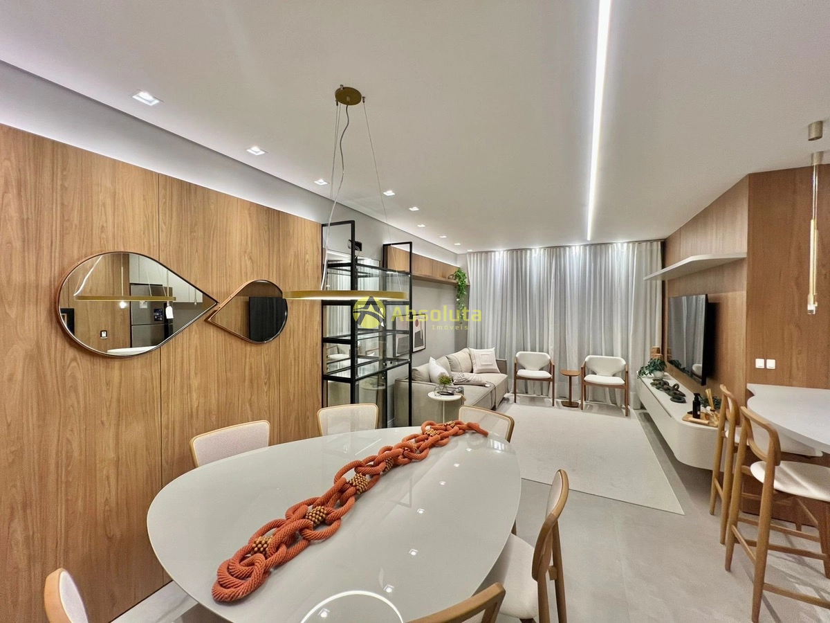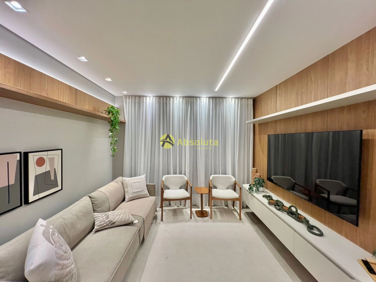 Apartamento novo, 02 suítes, lavabo, mobiliado e decorado, todo equipado, cozinha estilo americana, churrasqueira, área de serviço separada, box de garagem.