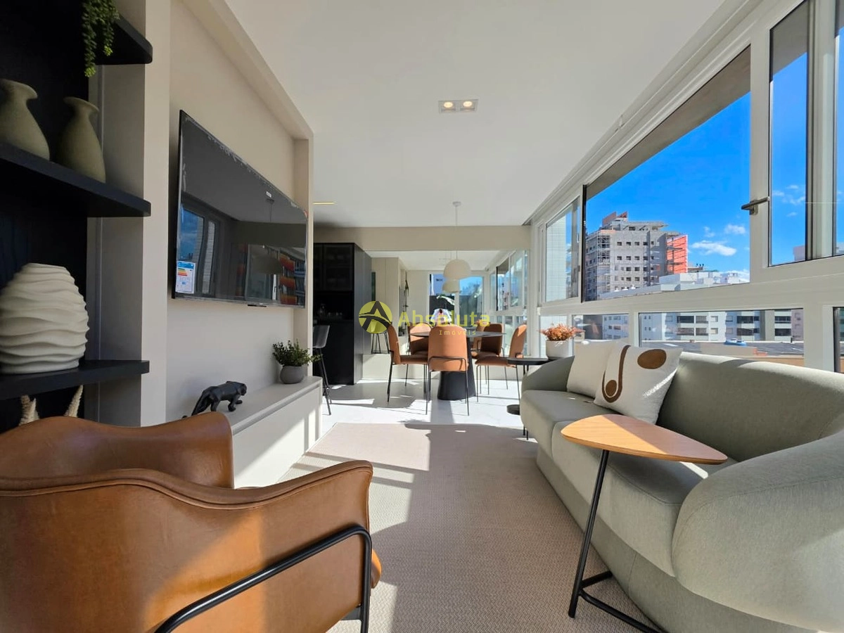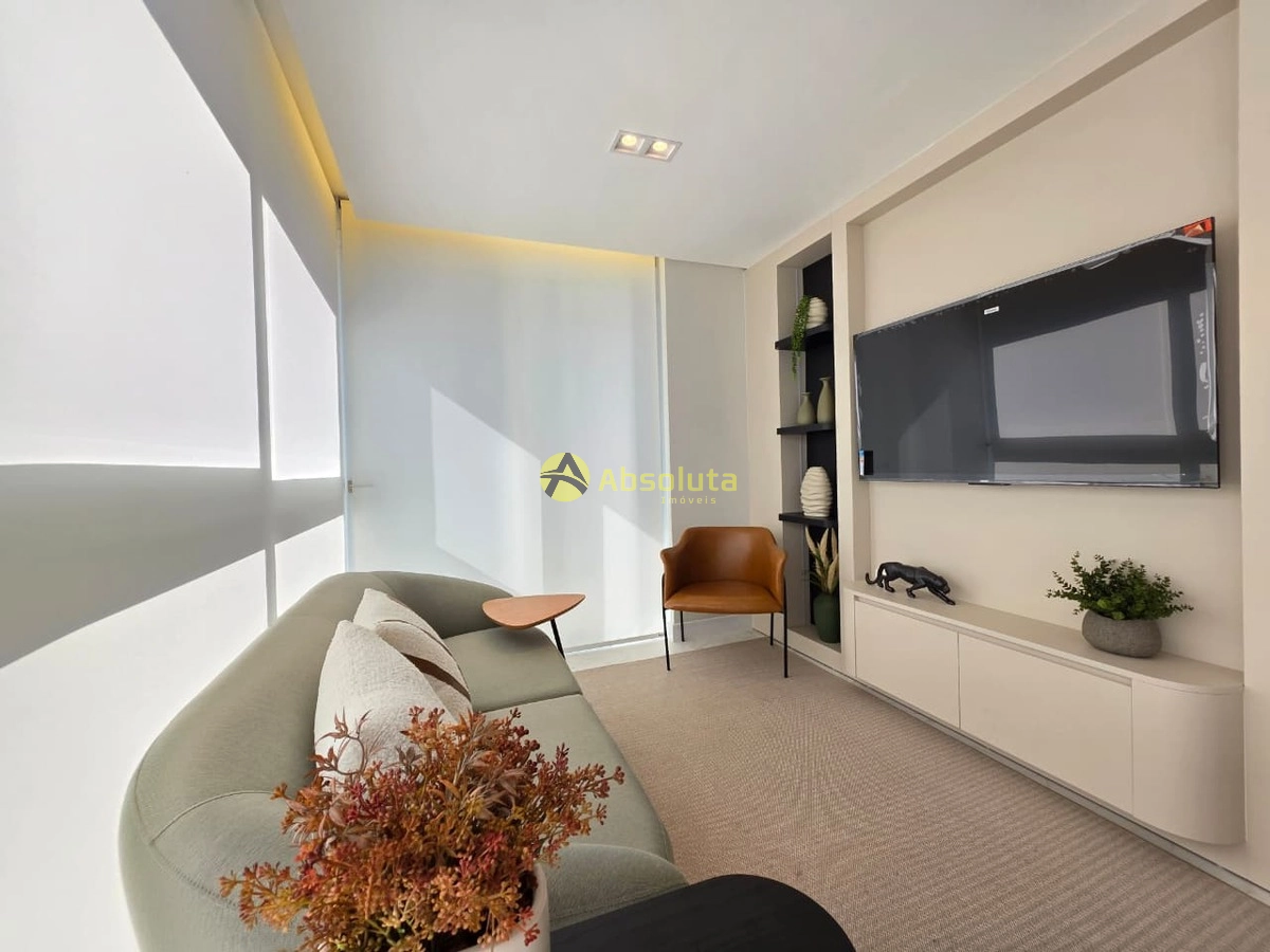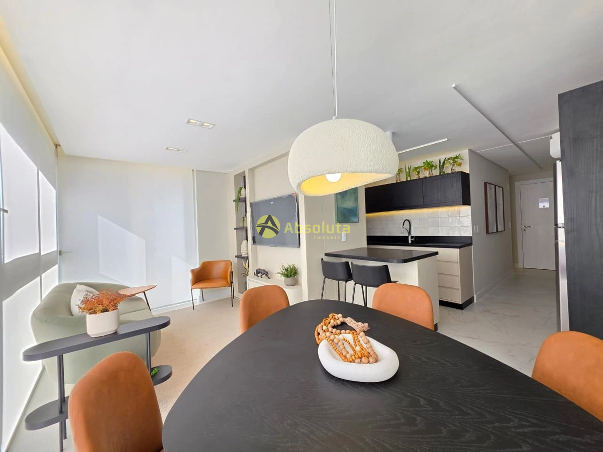 Apartamento novo, sem uso, dois amplos terraços privativos, finamente mobiliado, decorado, equipado e climatizado, composto de 2 dormitórios, sendo um deles suíte, banho social, sala de estar com acesso ao terraço, sala de jantar, churrasqueira, cozinha aberta, área de serviços separada, e um box de estacionamento.