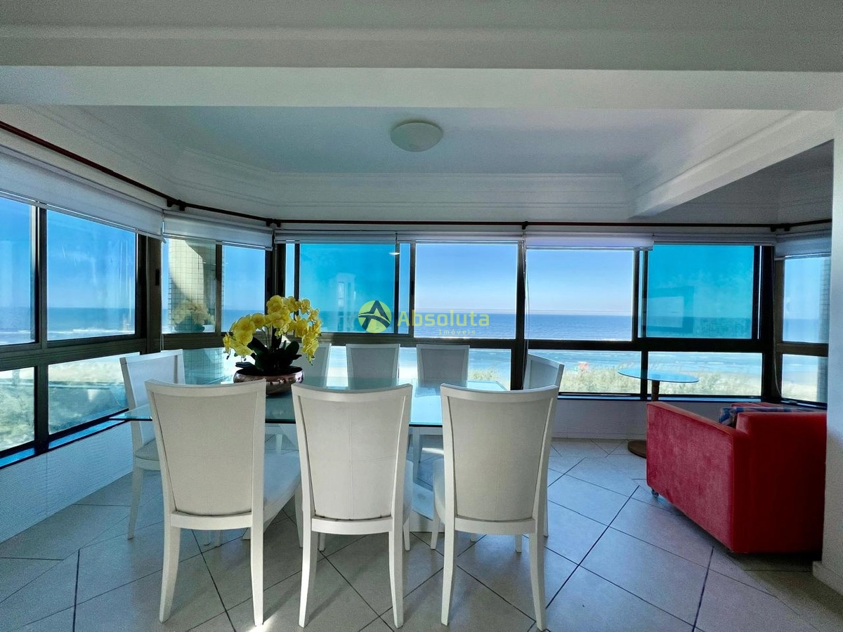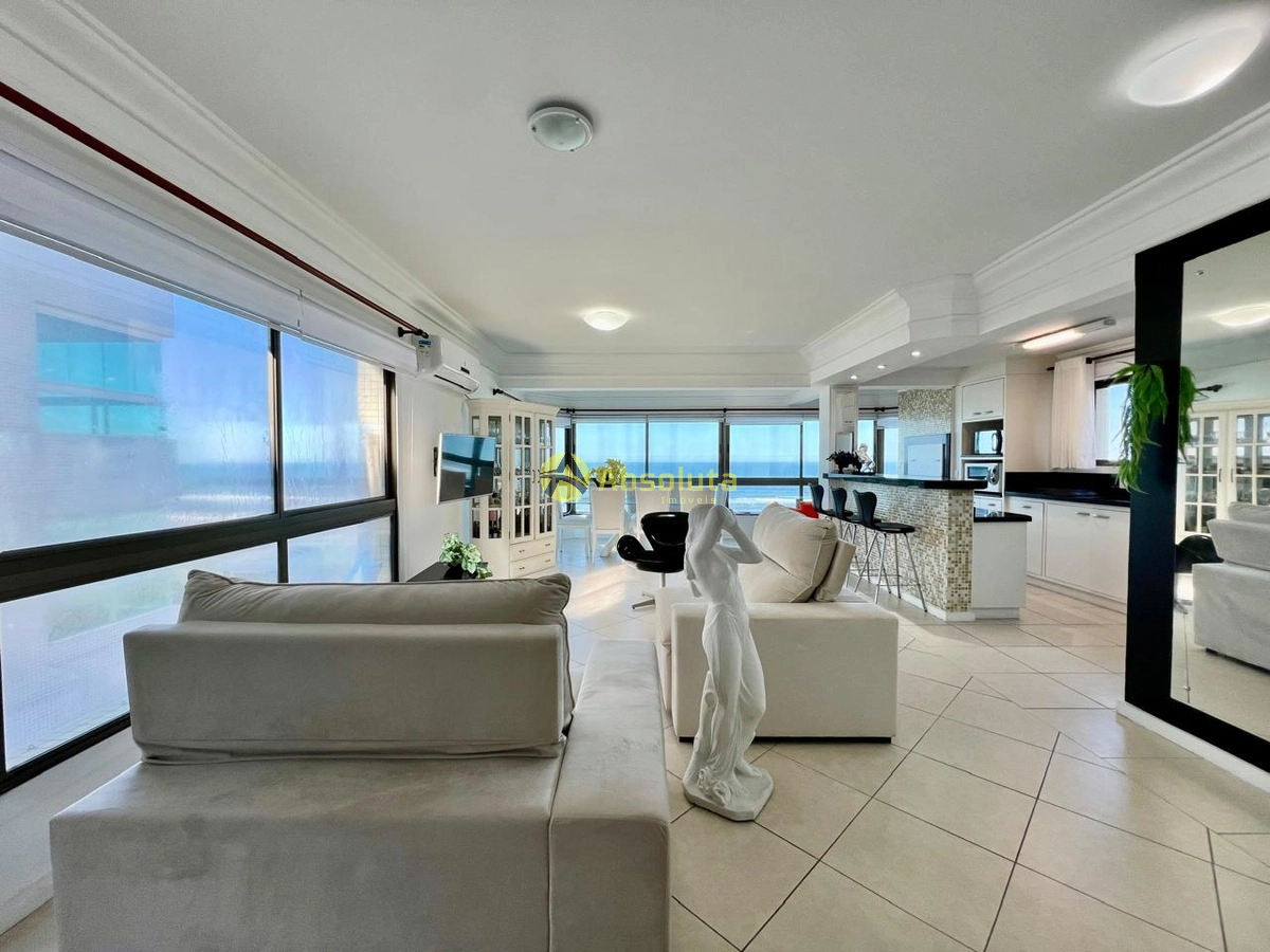 Apartamento único a Beira Mar, composto de três suítes, lavabo, cozinha americana com espaço gourmet, living em três ambientes com lareira, sacada de frente com vista cinematográfica para o mar, ótima posição solar, leste e norte! todas as peças com excelente ventilação, duas vagas térreas de fácil acesso. Prédio exclusivo, com apenas um apartamento por andar, confira condições de pagamento e agende sua visita,