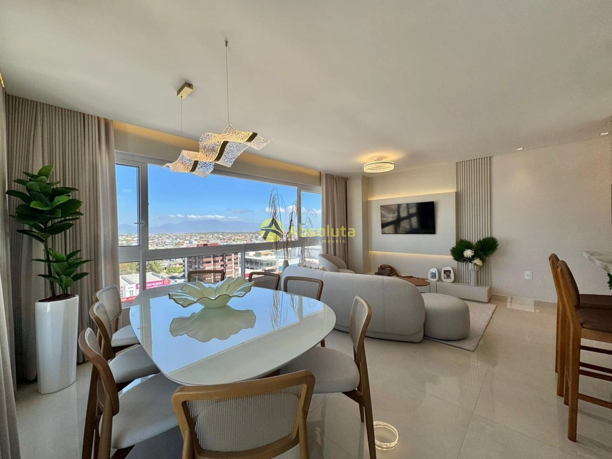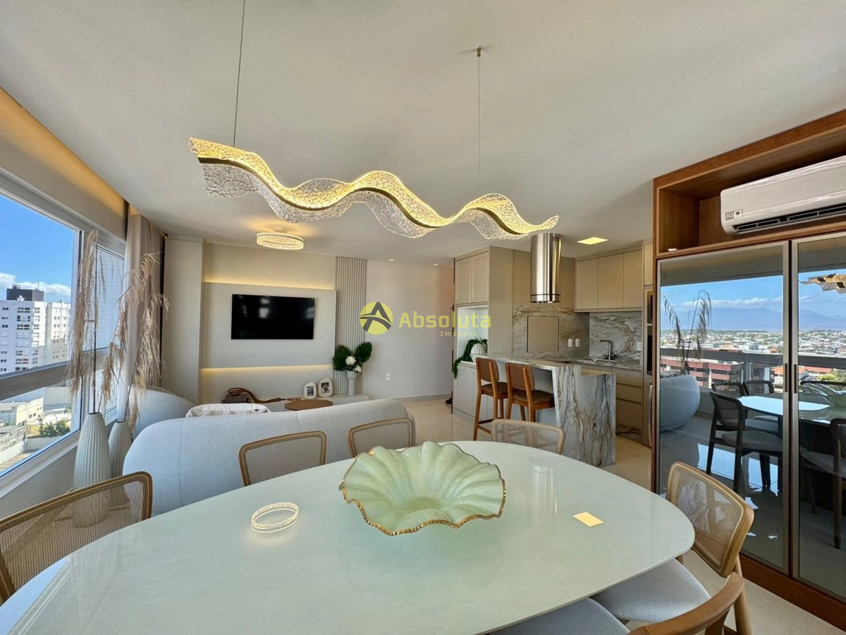 Apartamento novo com três dormitórios sendo uma suíte todo mobiliado e decorado com living amplo integrando sala de estar e jantar cozinha americana churrasqueira área de serviço separada split em todos os ambientes esquadrias em PVC com persianas automatizadas nos dormitórios água quente gás central medidores individuais empreendimento de alto padrão com dois elevadores piscina aquecida com cascata salão de festas rooftop com espaço gourmet academia equipada terraço com vista panorâmica para o mar cidade serra e lagoa e 2 vagas de garagem.
