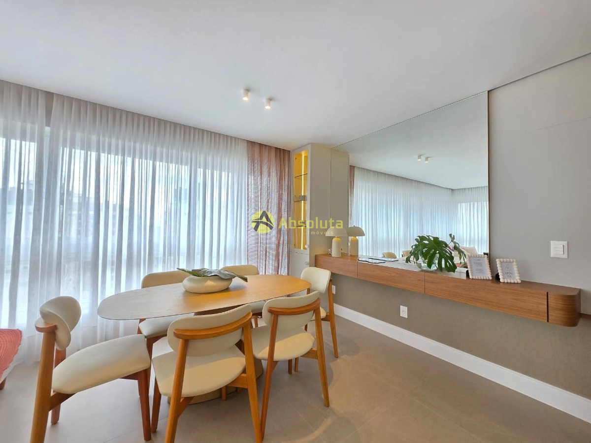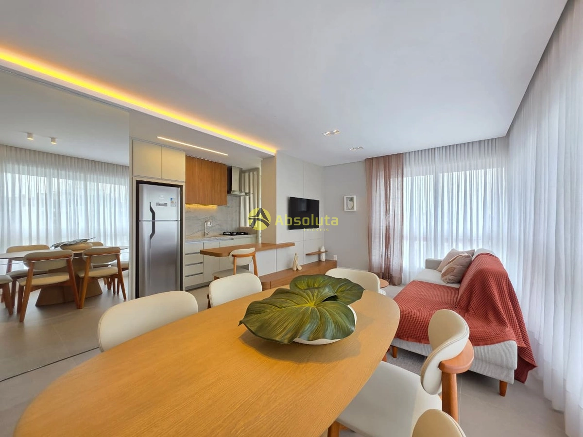 Apartamento novo, totalmente mobilado, decorado e equipado, composto de três dormitórios, sendo uma suíte, banheiro social e lavabo, cozinha estilo americana, churrasqueira, área de serviço, sacada integrada ao living, peças amplas e bem iluminadas e ventiladas, linda vista, ótima posição solar e dois box de estacionamento.