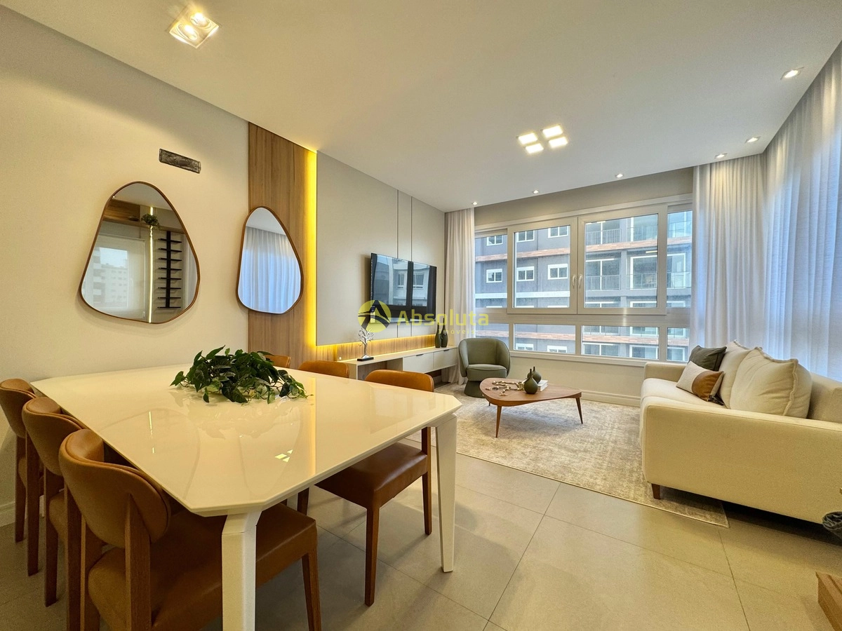 Apartamento diferenciado, composto por três dormitórios, andar alto ventilação direta de todas as peças, vista para praça, living em 3 ambientes, rebaixo em gesso, piso porcelanato, área de serviço separada, esquadrias em PVC, completamente mobiliado pronto para habitar e conta com box de garagem duplo para dois carros.