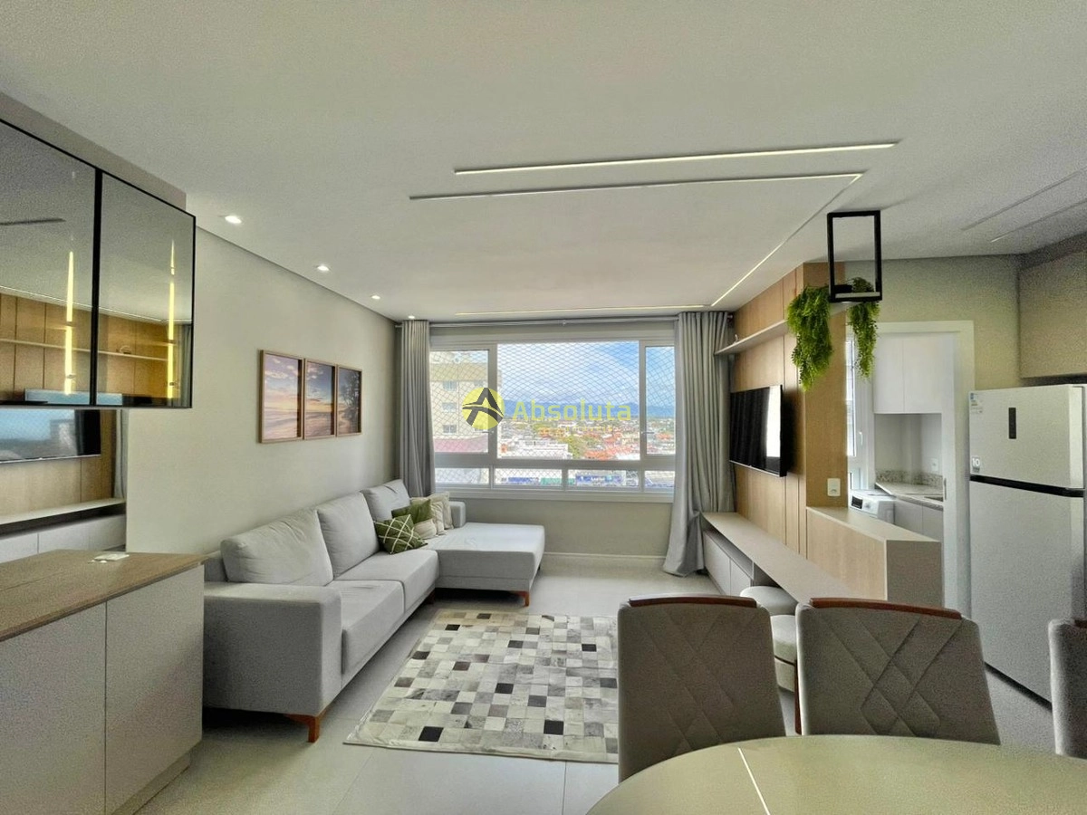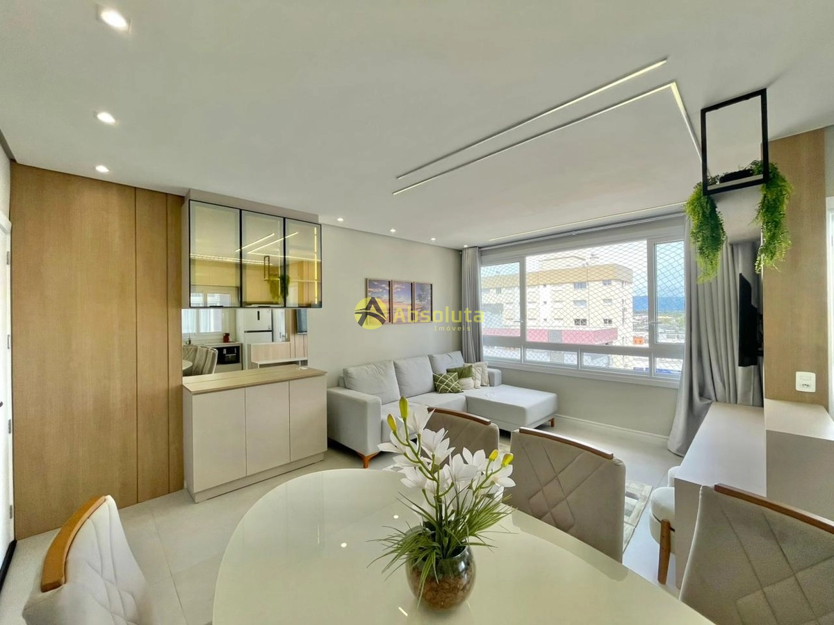 Apartamento composto de 3 dormitórios, um sendo suíte, mobiliado/decorado, cozinha, lavanderia separada, churrasqueira, living 2 ambientes, sacada de frente com vista para serra, água quente, gás central, ambiente climatizado, piso porcelanato polido, esquadrias em PVC, box de garagem de fácil acesso.