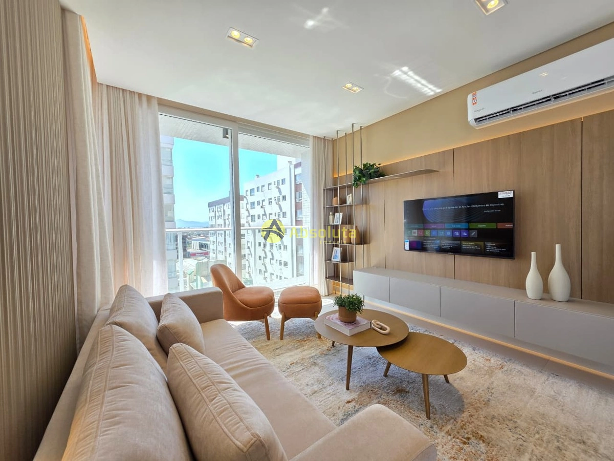 Apartamento novo, totalmente mobiliado e decorado, composto de 3 dormitórios, sendo um deles suíte, banheiro social, lavabo, living amplo, composto de cozinha estilo americana, área de serviço separada, sala de estar e jantar integradas, sacada separada com acesso por uma porta janela, que proporciona mais ventilação e iluminação natural, vista para o mar, serra e lagoa, mais dois box de estacionamento.