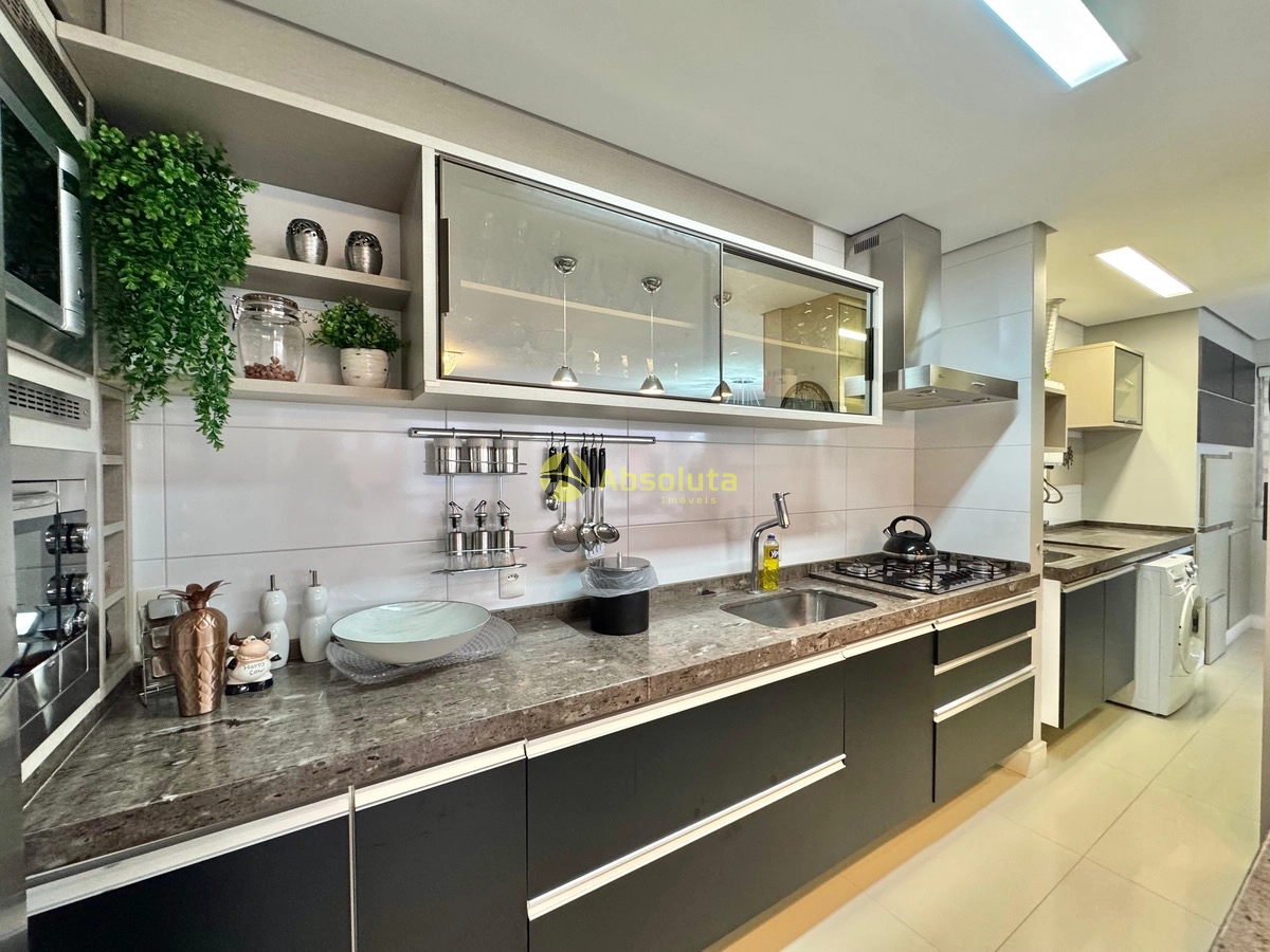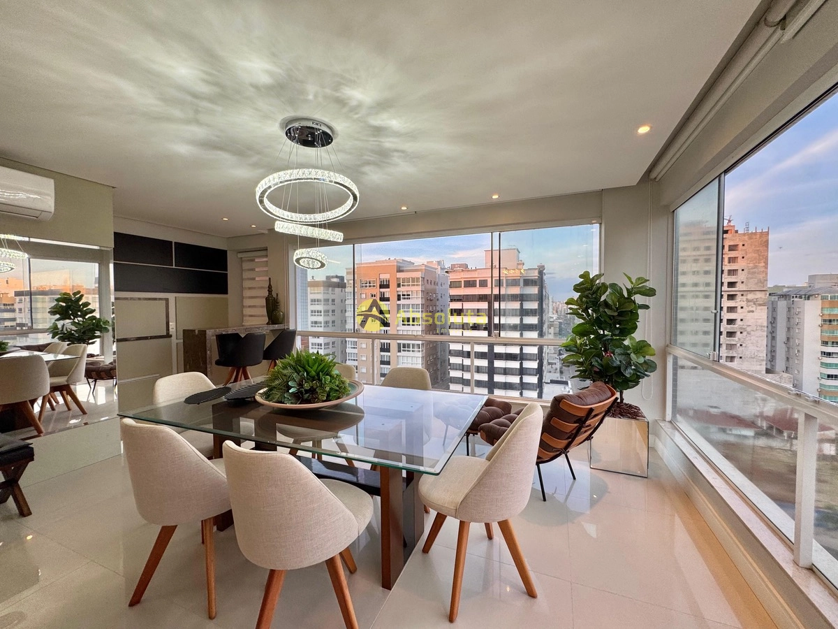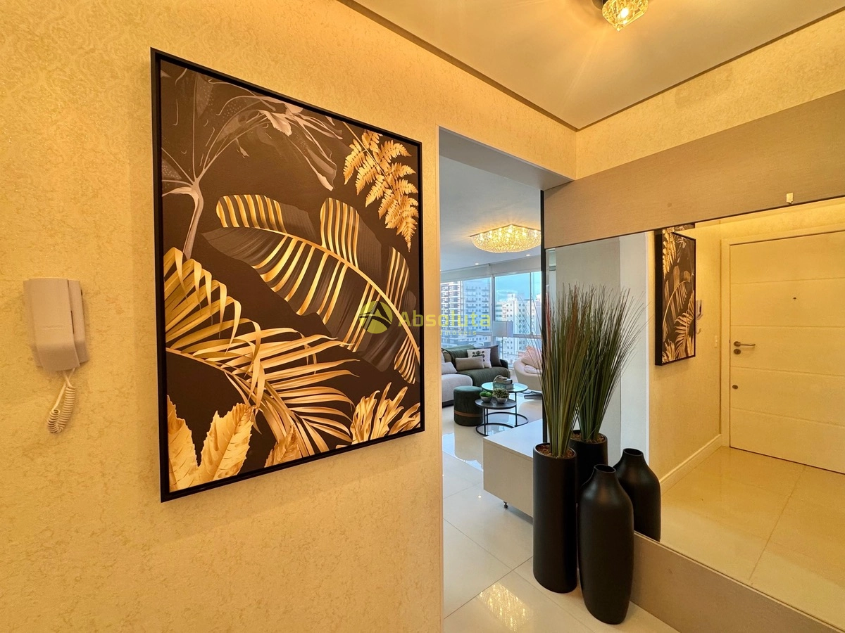 Edifício de esquina com infraestrutura de lazer, composta por piscina e salão de festas totalmente mobiliado, 100% revestido em pastilhas, hall de entrada finamente decorado, espera para água quente e ar split, gás centralizado, hidrômetro individual de água, 2 elevadores digitais, zelador permanente. Apartamento mobiliado e decorado, distribuído em 3 amplos dormitórios, sendo uma suíte, banheiro social, área de serviço, cozinha americana, churrasqueira, amplo living em 3 ambientes integrados a uma linda sacada de frente, vista definida, excelente acabamento, piso em porcelanato, rebaixo em gesso, peças amplas e muito bem ventiladas, andar alto e ótima orientação solar, box para carro com fácil acesso. Localizado em frente a uma das mais belas praças da cidade, com apenas 150 metros de distância da praia e ao lado da Av. Ubirajara, no bairro Navegantes.