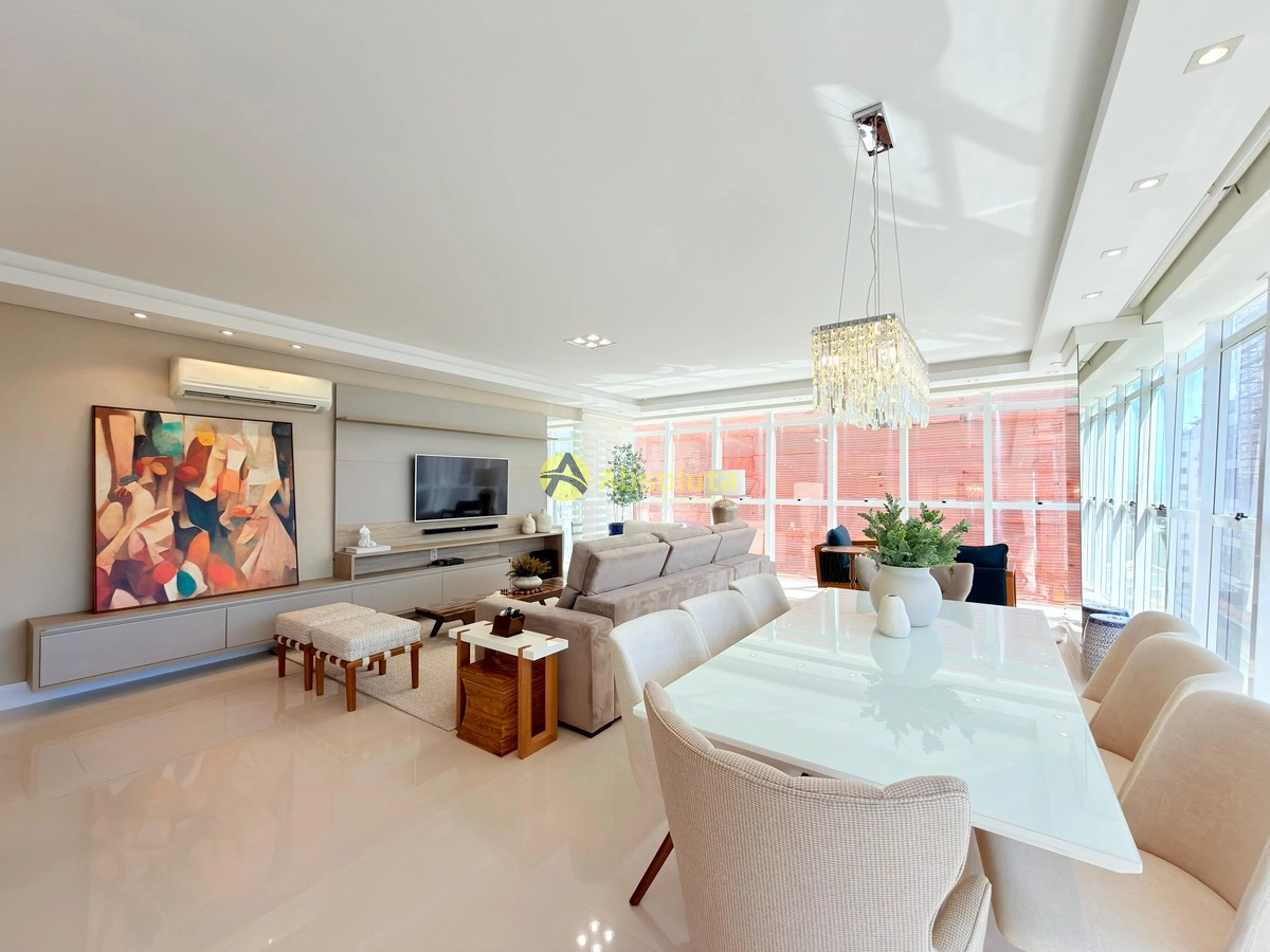 Apartamento de esquina. finamente mobiliado e decorado, leste e norte, composto por três dormitórios, sendo uma suíte, banho social com cuba dupla, e lavabo, cozinha americana com espaço gourmet, sala de estar e jantar, sacada em L de esquina com vista eterna para o mar, totalmente climatizado, 2 vagas de garagem, edifício de alto padrão, com infraestrutura completa de lazer, piscina, academia, salão de festas com sala de jogos, hall decorado com 2 elevadores.