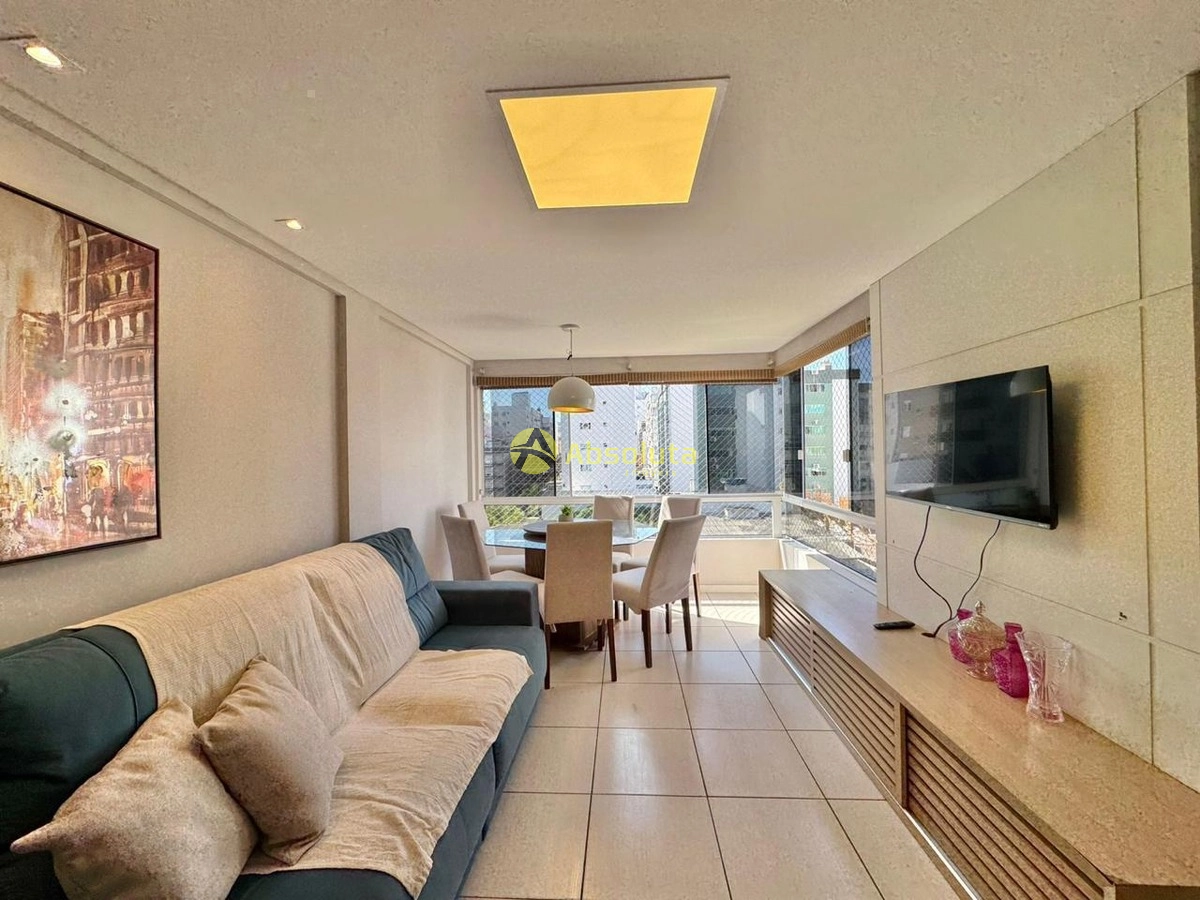 Apartamento composto por 3 quartos, sendo 1 suite, banheiro social e lavabo, todo mobiliado e decorado, sacada integrada de frente. Possui vaga de garagem.