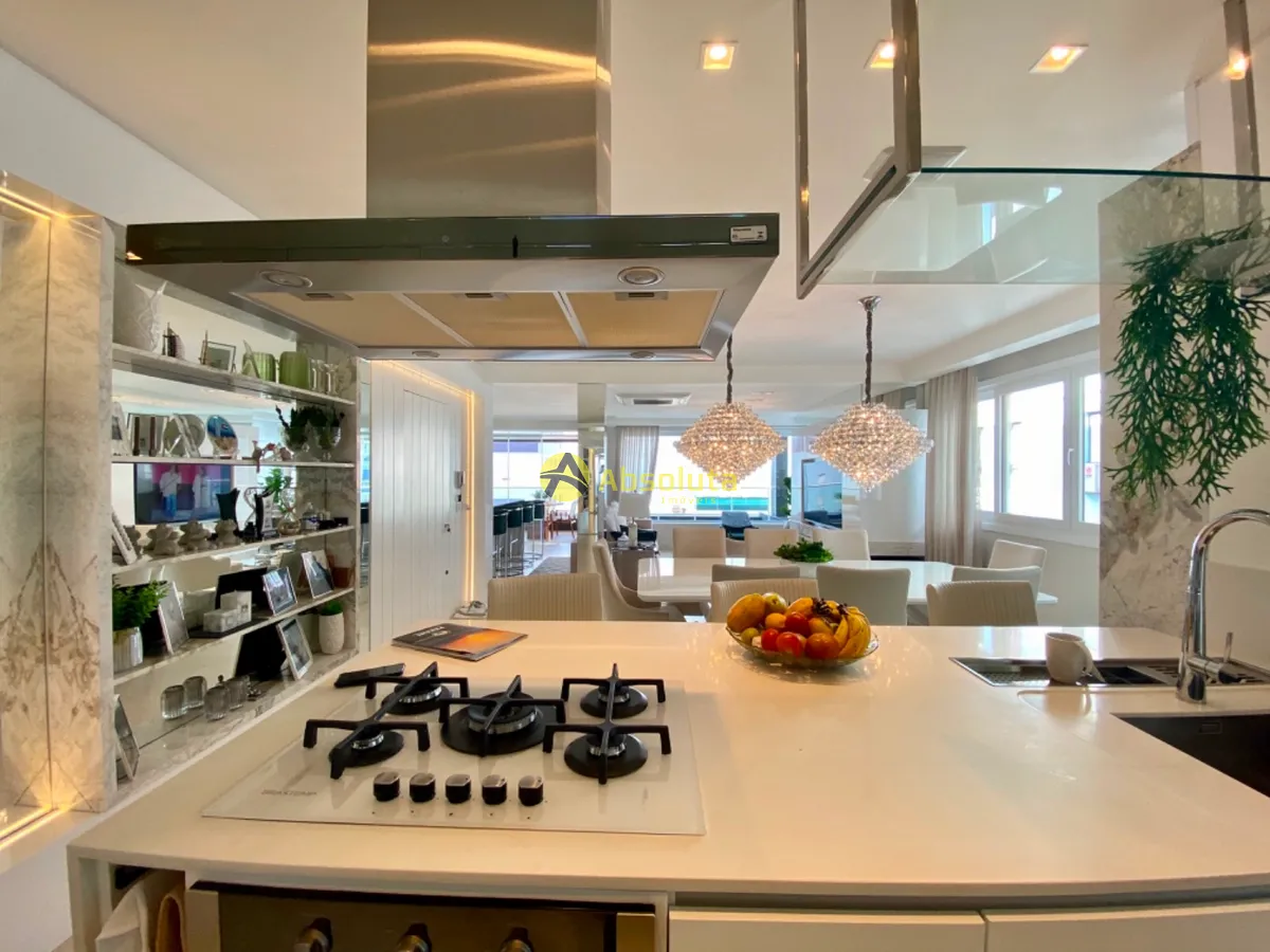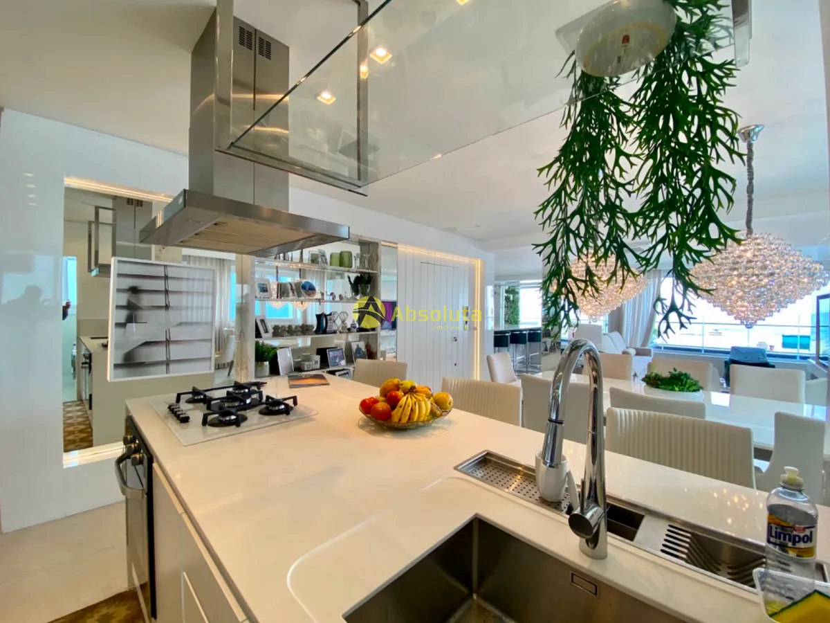 Magnífico apartamento de 4 suítes, finamente mobiliado e decorado, sacada de frente com piscina privativa e vista eterna para o mar, ampla metragem com 284m2, muito bem distribuído com sala da estar e jantar, lavabo, electrodomésticos de alto padrão, cozinha americana com bancada em granito, área de serviço separada, excelente ventilação e iluminação natural, ambientes muito bem arejados, split em todas peças, e 3 vagas para carro.