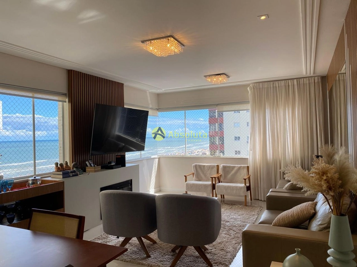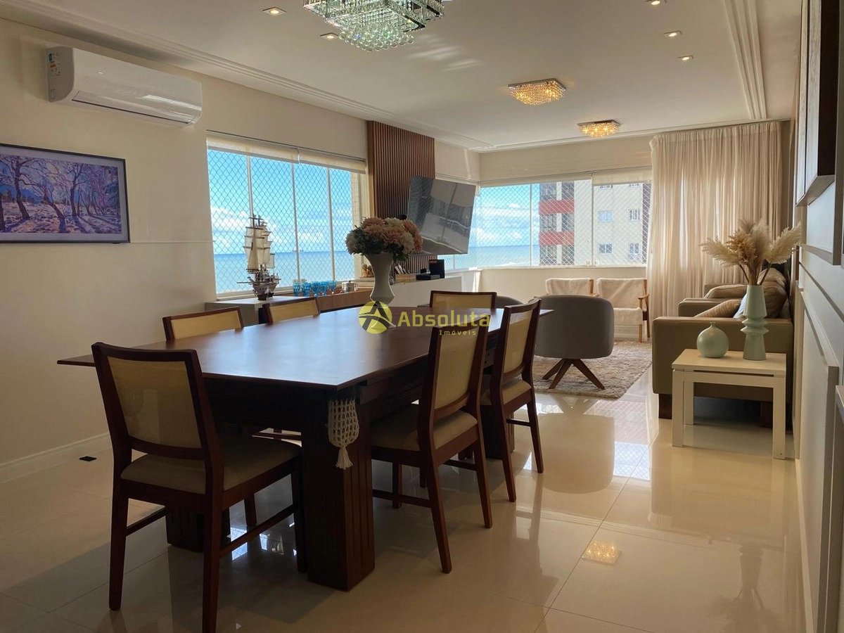 Apartamento com 148,8m² muito bem distribuídos em 4 dormitórios (sendo 2 suítes, 1 c/hidro), piso porcelanato polido, ar-split em todas as peças, amplo living integrados com sacada de frente com churrasqueira e vista eterna para o mar, cozinha americana , 2 vagas de garagem.