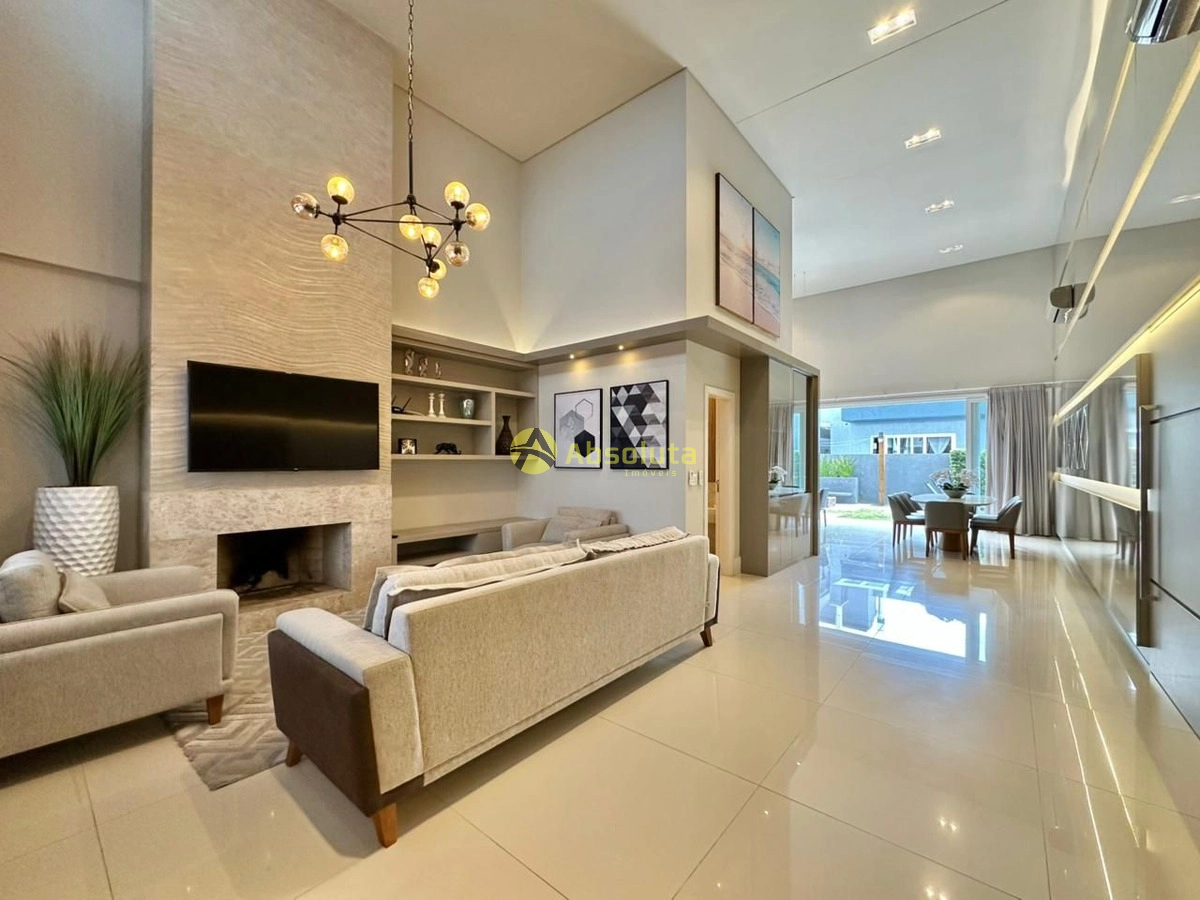 Excelente casa térrea, composto por 4 suítes, lavabo, cozinha americana com churrasqueira equipada, living com pé direito duplo em 3 ambientes bem distribuídos, sala de estar com lareira, sala de jantar ampla, finamente mobiliada, decorada e climatizada, todas as esquadrias em PVC, piscina de concreto, espaço fireplace, lavanderia completa, melhor orientação solar da praia, garagem coberta, construída em ótima padrão e com um design diferenciado das demais casa do condomínio
