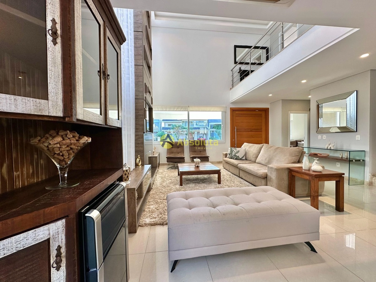 Sobrado diferenciado em um dos melhores condomínios da cidade, composto de 4 suítes, sendo 1 térrea, totalmente mobiliada e decorada, living em 3 ambientes, cozinha com bancada em granito, churrasqueira, área de serviço separada, esquadrias em PVC branco, pé direito alto, sala de estar e jantar, piso porcelanato polido, deck com paisagismo atrás, garagem coberta para 2 carros. Estuda recebimento de imóvel e parcelamento direto, entre em contato agora mesmo.