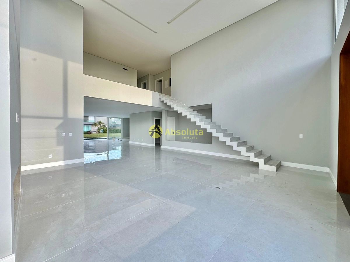 Sobrado com com 430,00 m², composto por 5 suítes + lavabo, beira lago, nova nunca habitada, pé direito duplo, lareira, churrasqueira, piscina de concreto, Cond. com infraestrutura completa de lazer. Entre em contato e agende uma visita !