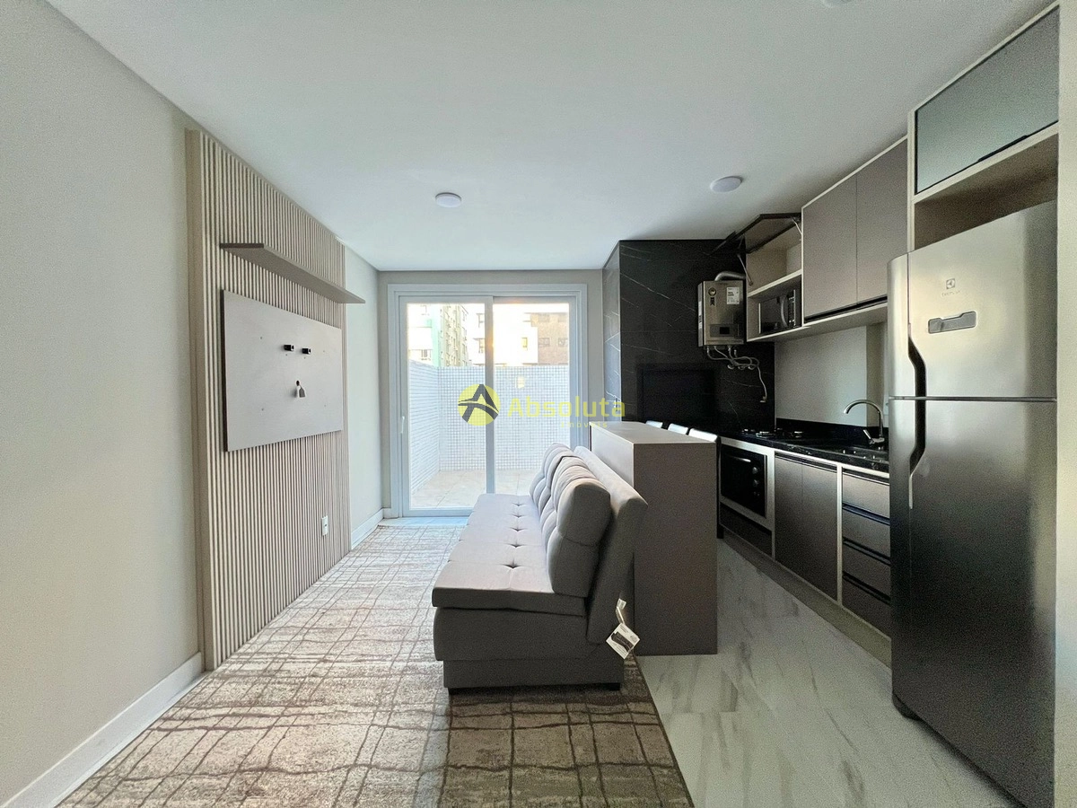 Apartamento estilo loft, completamente mobiliado e decorado com terraço privativo, ambientes totalmente integrados, banheiro social, excelente orientação solar e Box de estacionamento.
