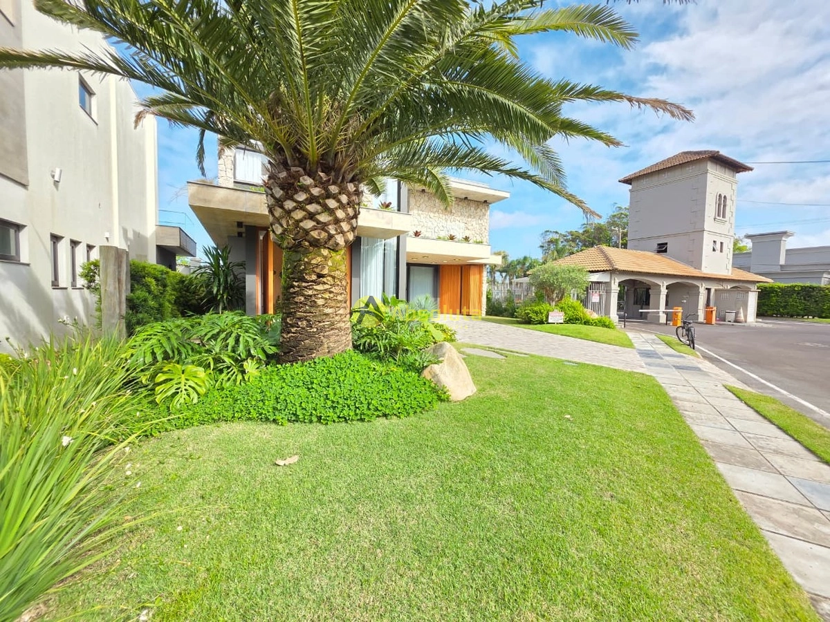 Sobrado totalmente decorado e equipado, com 257,25 m² muito bem distribuídos em quatro suítes individuais, lavabo, banheiro externo, living integrado, churrasqueira, revestimento em pedra moledo, acabamento em concreto aparente, alto padrão em todos os detalhes, piscina de concreto, paisagismo adulto com canariense e oliveira, aberturas em PVC preto, persianas automatizadas e com telas mosquiteiros em todas esquadrias, lote com 315,95 M² de esquina.
