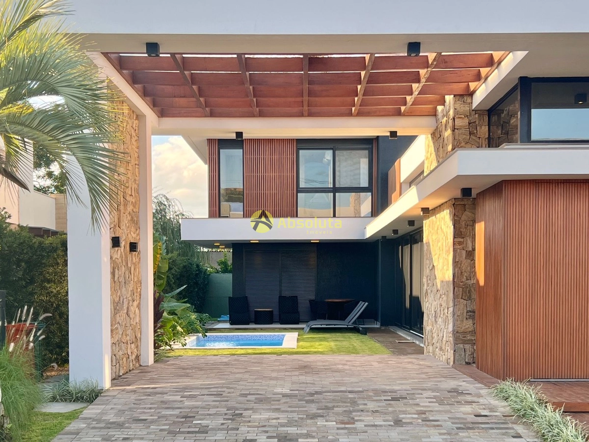 São quatro suítes espaçosas, lavabo, ambientes totalmente mobiliados e decorados com extremo bom gosto e um estilo moderno que impressiona em cada detalhe, living amplo e com integração perfeita entre sala de estar, jantar e cozinha, ideal para receber amigos e familiares, casa conta com um espaço gourmet completo, piscina privativa e área externa acolhedora.